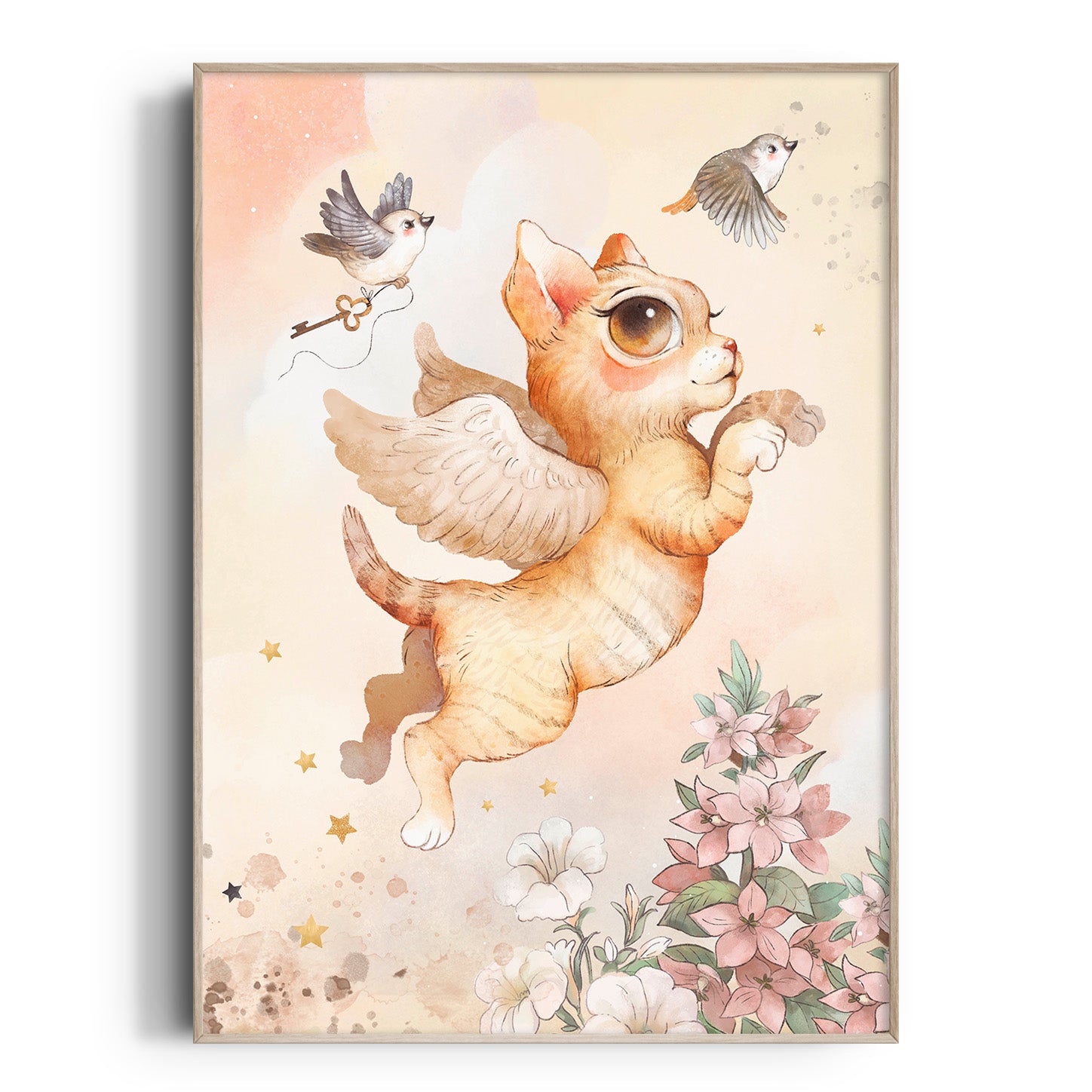Unit price perA beautiful addition to your child's nursery or bedroom is this watercolour, vintage style, kitten with wings print. This magical wall art will add the finishing touches to any little girls special space. Use as a stand alone feature or mix and match with our other co-ordinating art prints.