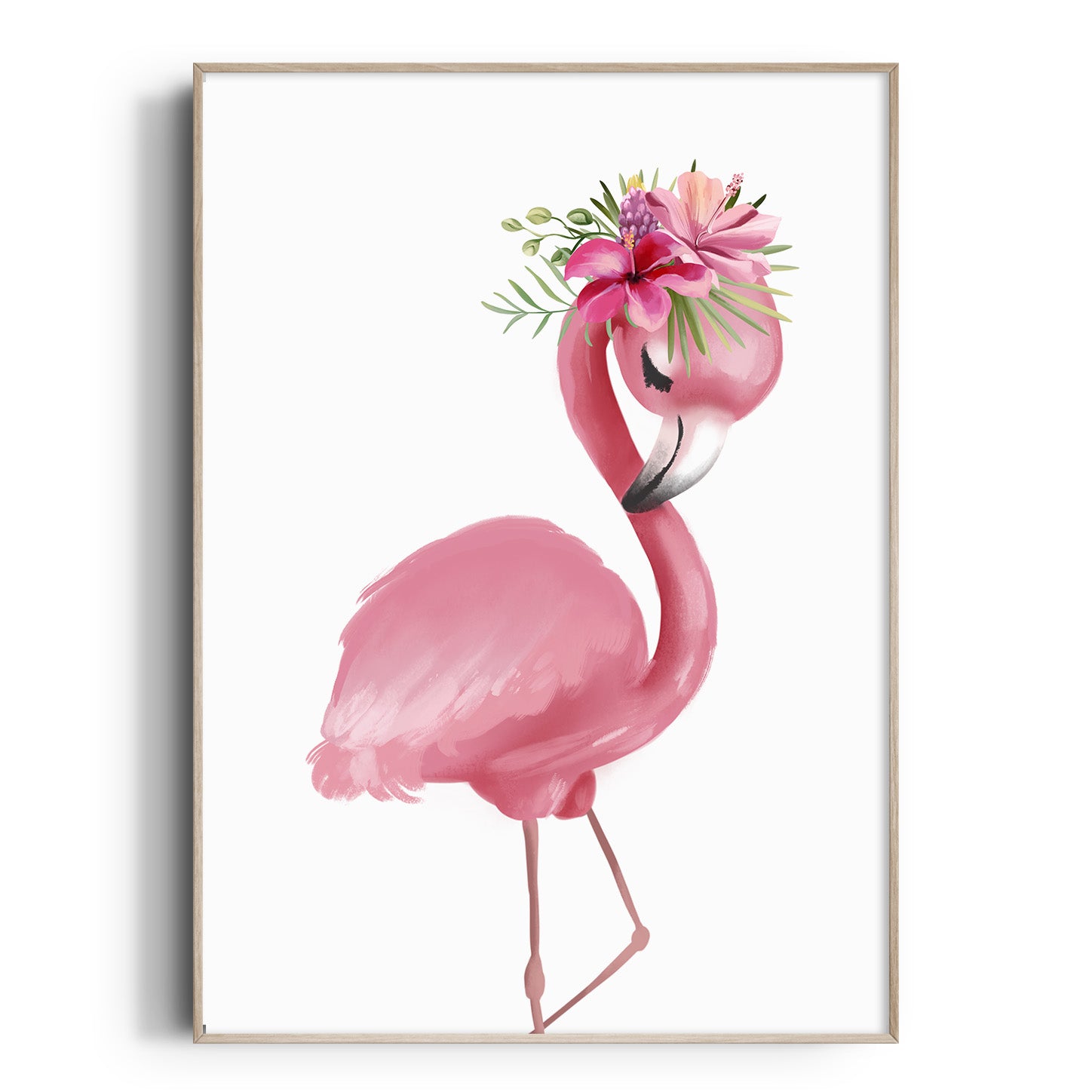 A beautiful addition to your child's nursery or bedroom is this watercolour flamingo art print, featuring a floral crown, this pink wall art will add the finishing touches to any little girls special space.
