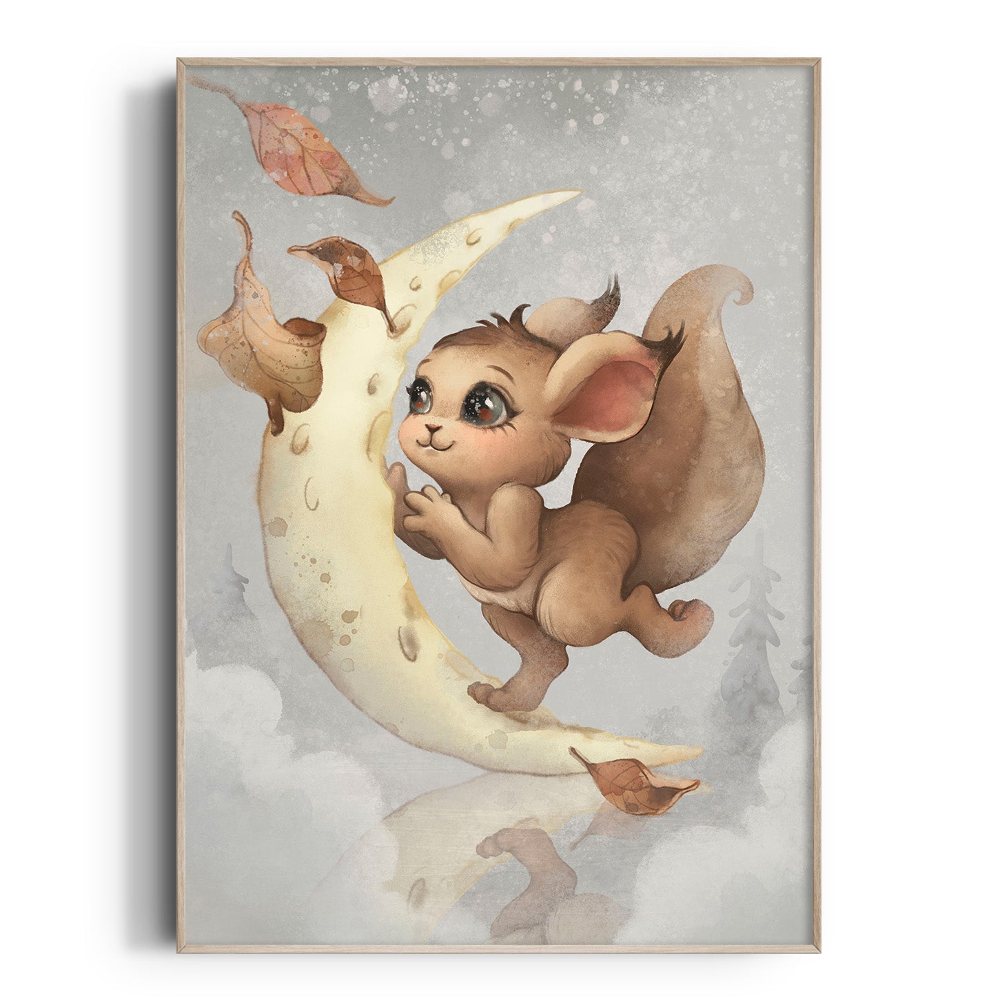 Unit price perA beautiful addition to your child's nursery or bedroom is this watercolour, whimsical, squirrel and moon print. This magical wall art will add the finishing touches to any little girls special space. Use as a stand alone feature or mix and match with our other co-ordinating art prints.