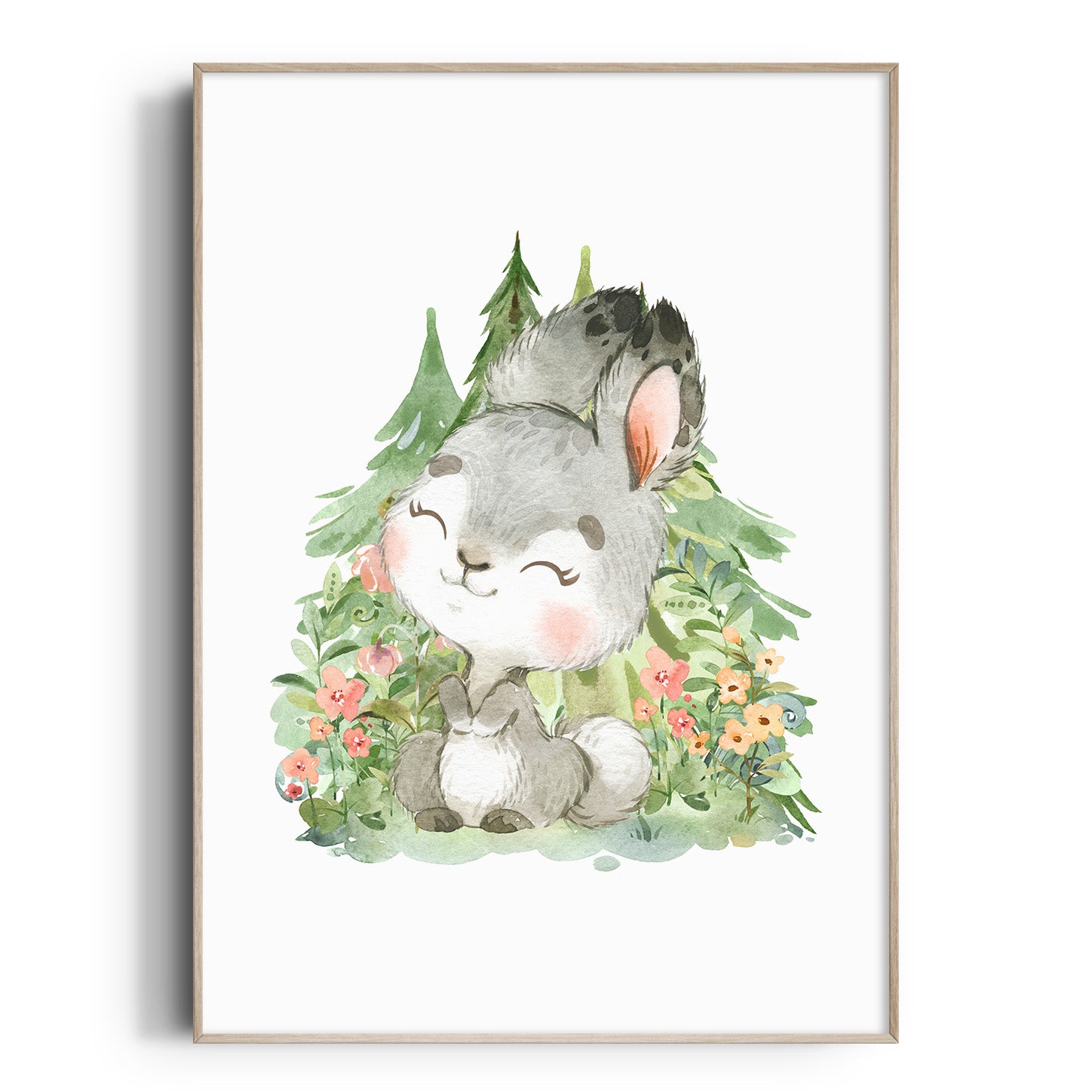 Perfect for the forest or animal themed nursery, bedroom or playroom decor is this woodland bunny wall art print. Use as a standalone piece or mix and match with our other woodland animal prints.