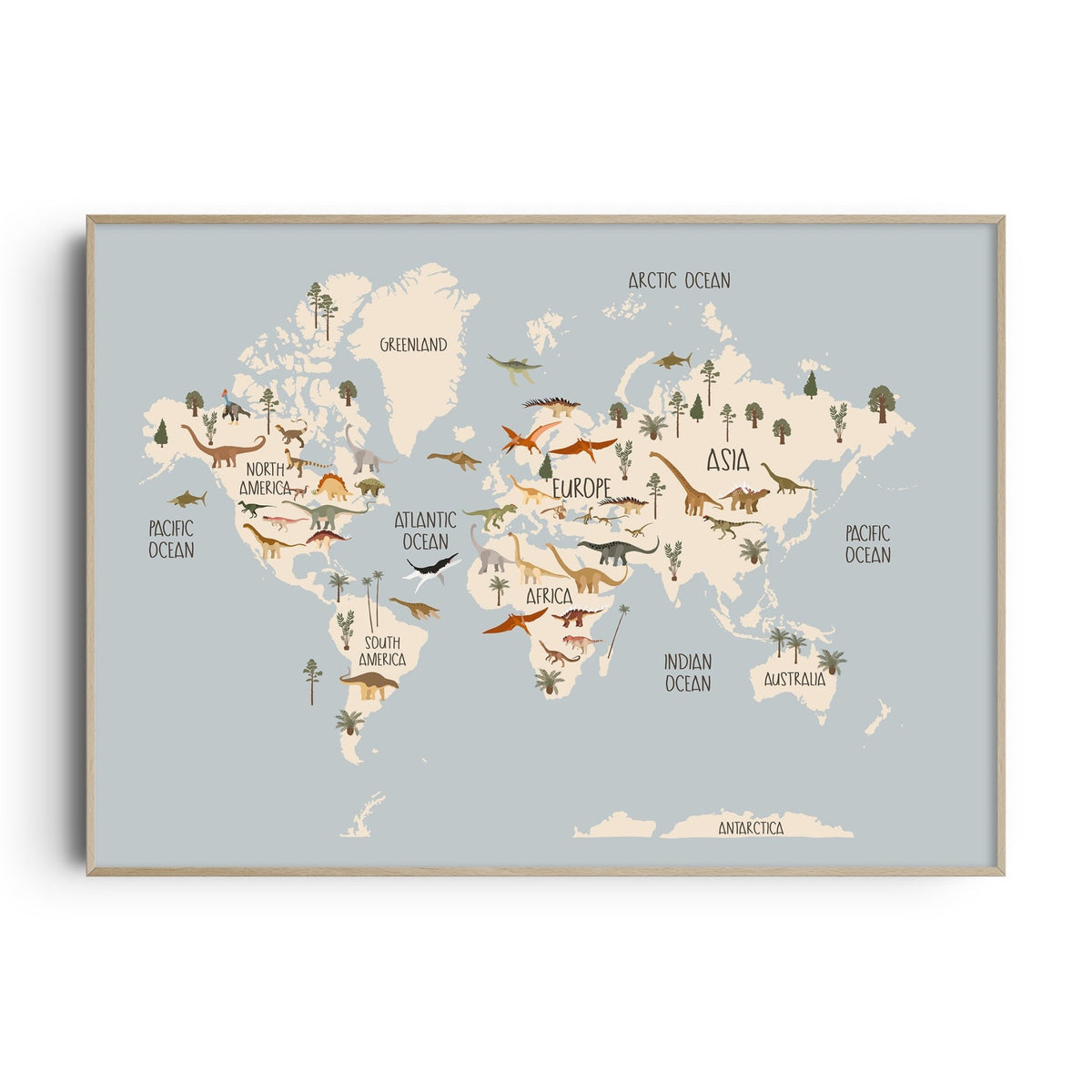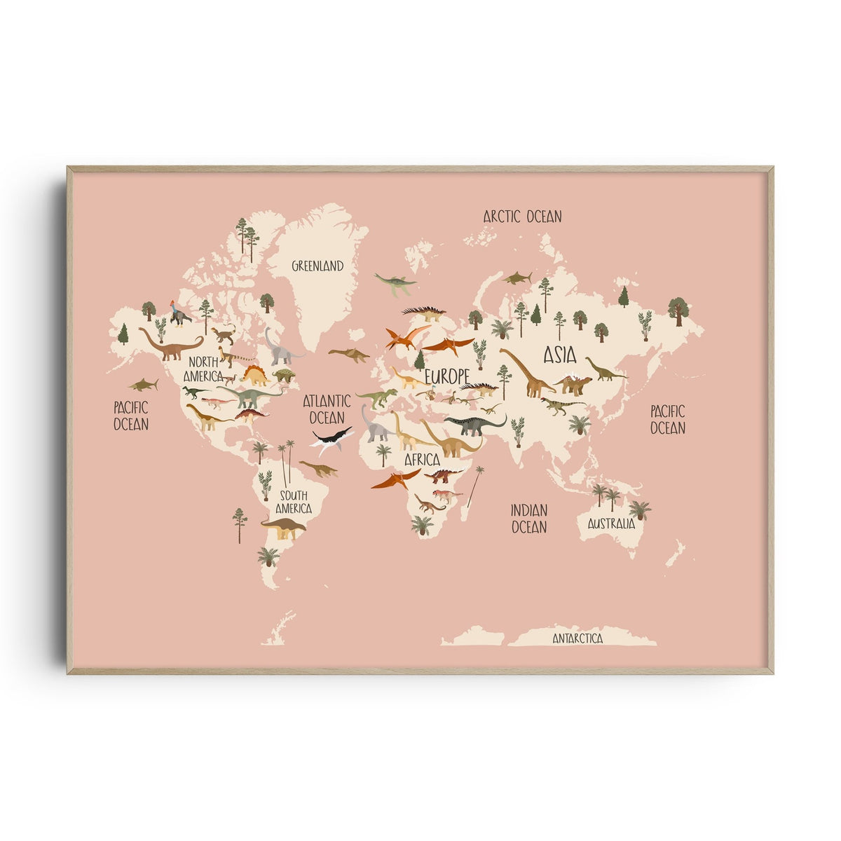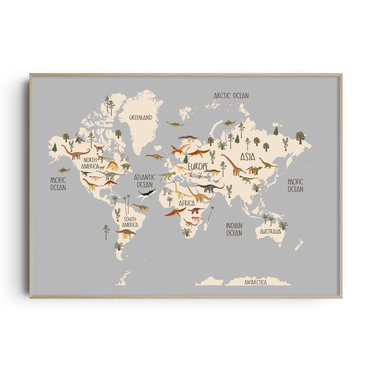 Unit price perThis dinosaur world map poster is perfect for the dinosaur inspired nursery or children's bedroom décor. A perfect new baby gift, or a great way to create a statement and add the finishing touches to your own child's space.