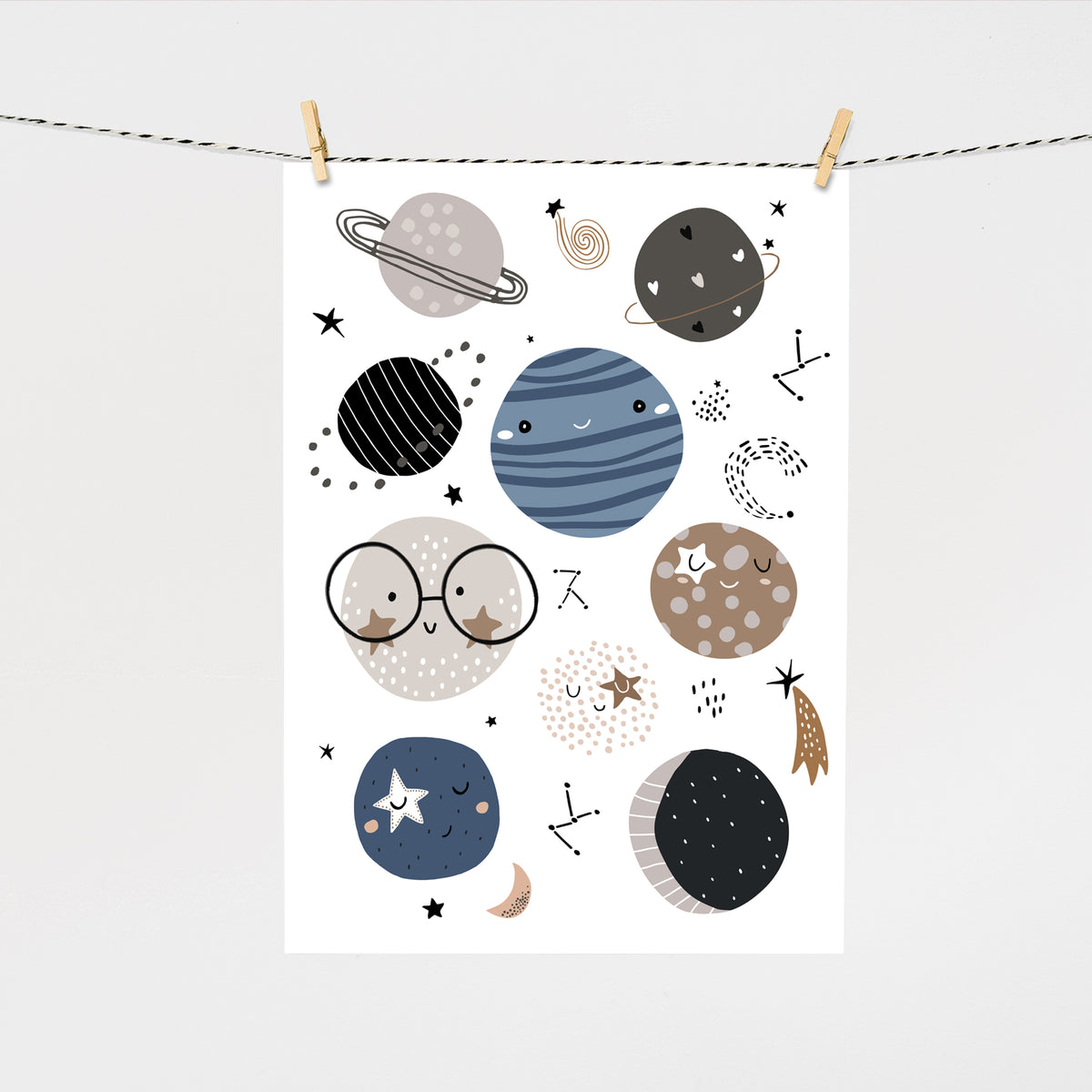 Unit price perThis fun space art print, featuring stars, planets and aspects of the solar system makes a perfect new baby gift, or a great way to add the finishing touches to your own child's space.