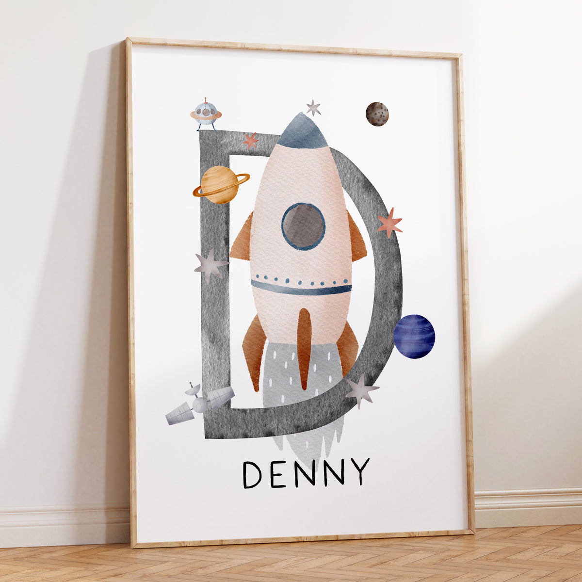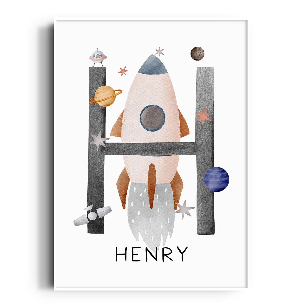 Unit price perPerfect for the space, planet or solar system themed nursery, bedroom or playroom, this rocket name print is personalised with your little one's details. A perfect new baby boy gift, or a great way to add the finishing touches to your own child's nursery or bedroom space.