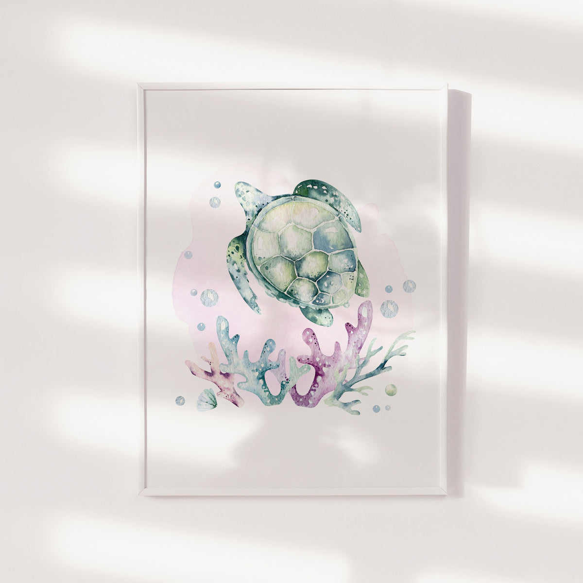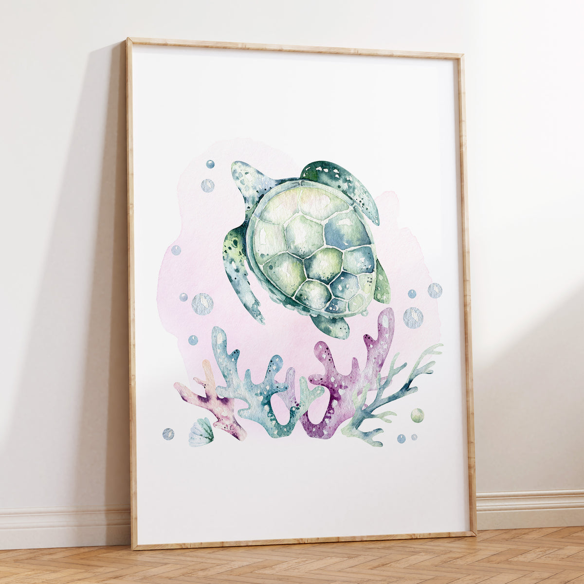 Unit price perPerfect for the ocean themed nursery, bedroom or playroom decor is this watercolour sea turtle wall art print, use as a standalone piece or co-ordinate with our other under the sea prints.