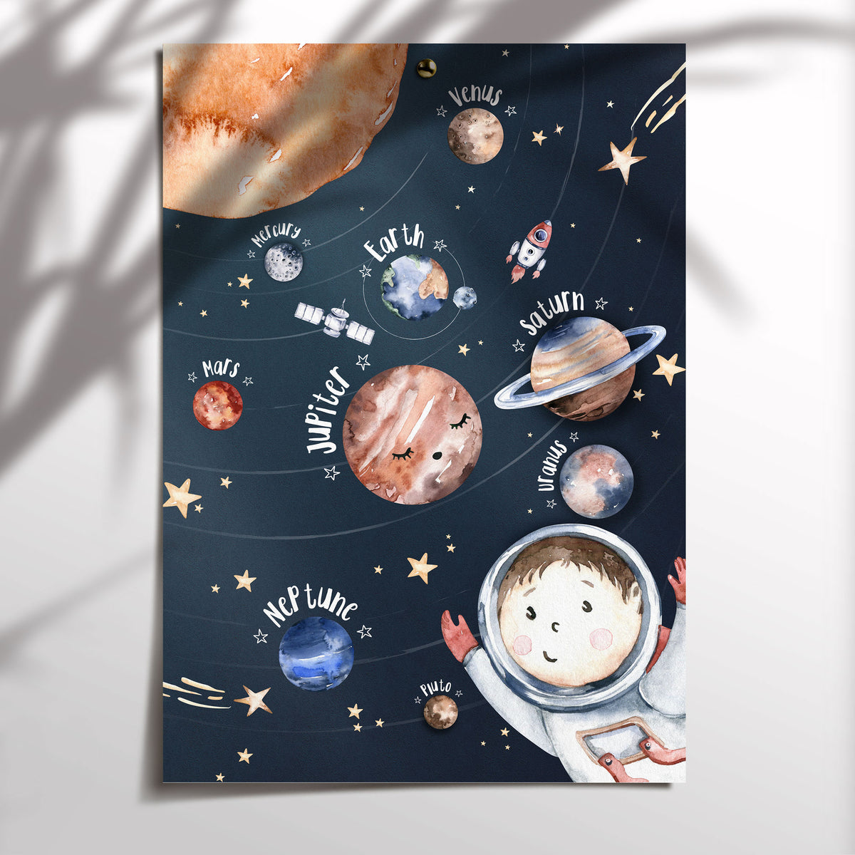 This solar system print is perfect for the space or planet themed nursery, bedroom or playroom decor.