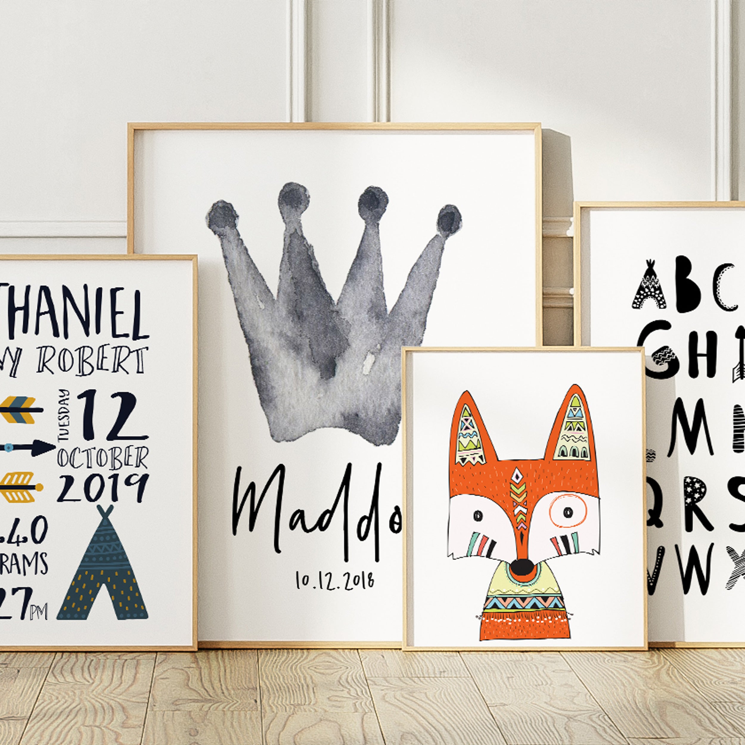 Set of 3 Prints - Woodland Name, Fox & Deer
