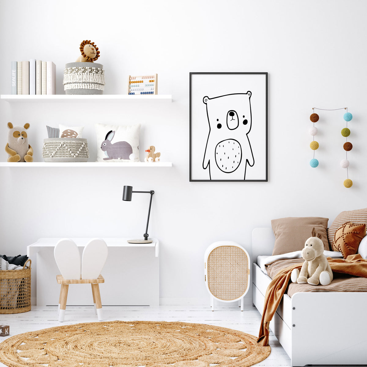 Unit price perThis simplistic bear wall art print is perfect for the woodland or forest themed nursery, bedroom or playroom decor. Use as a standalone piece or pair with other co-ordinating prints.