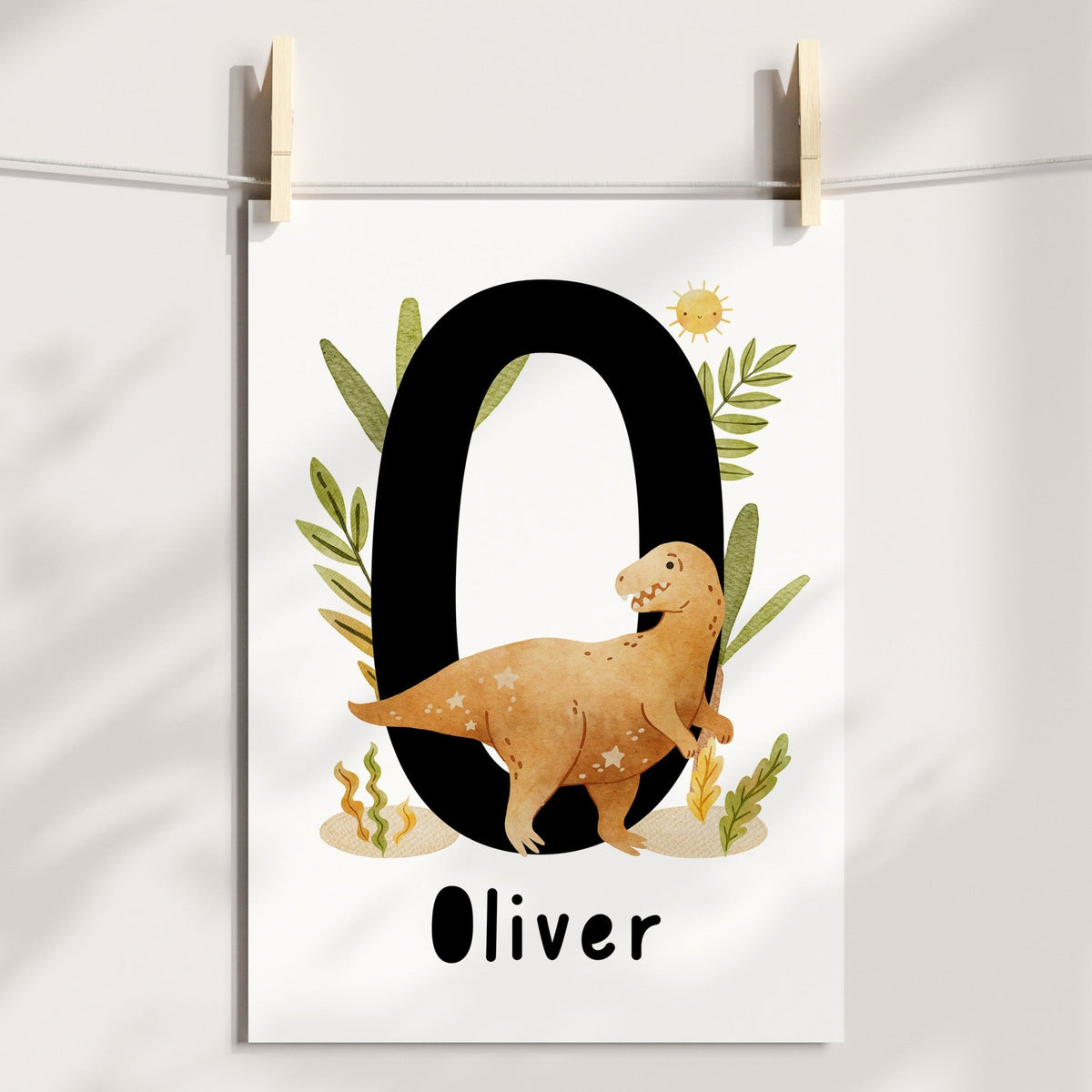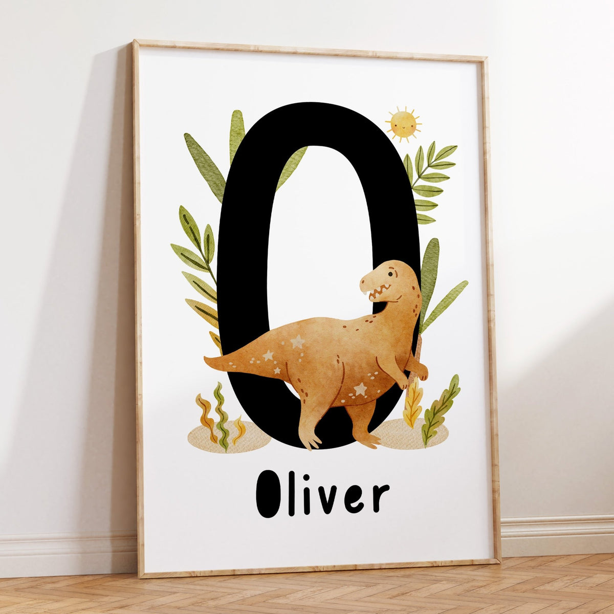 Unit price perThe perfect addition to the prehistoric themed nursery, bedroom or playroom decor is this personalised dinosaur name wall art print featuring a prehistoric allosaurus.