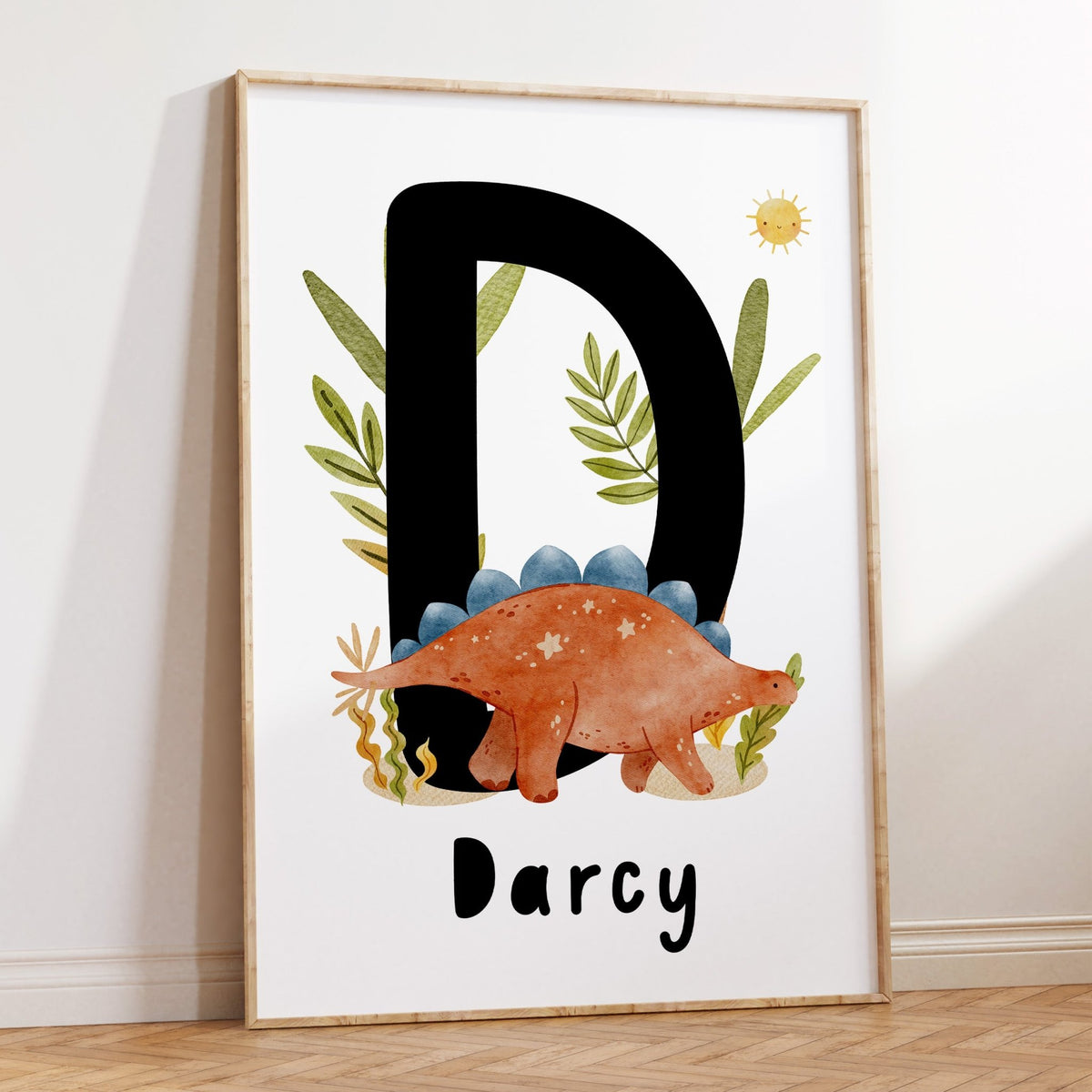 Unit price perThe perfect addition to the prehistoric themed nursery, bedroom or playroom decor is this personalised dinosaur name wall art print featuring a prehistoric stegosaurus.