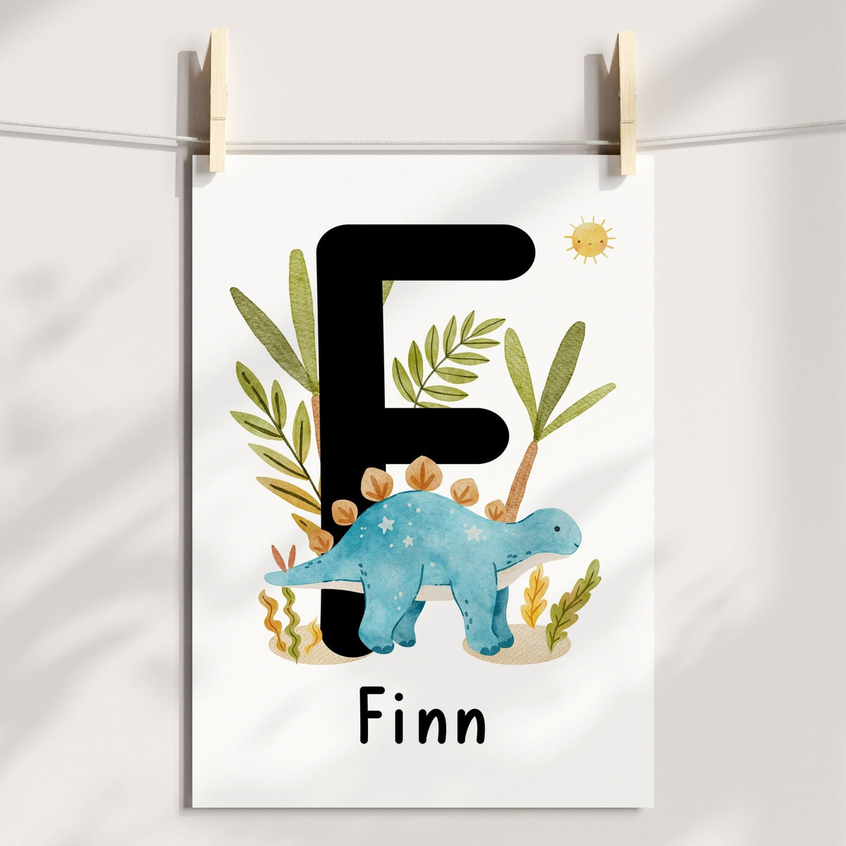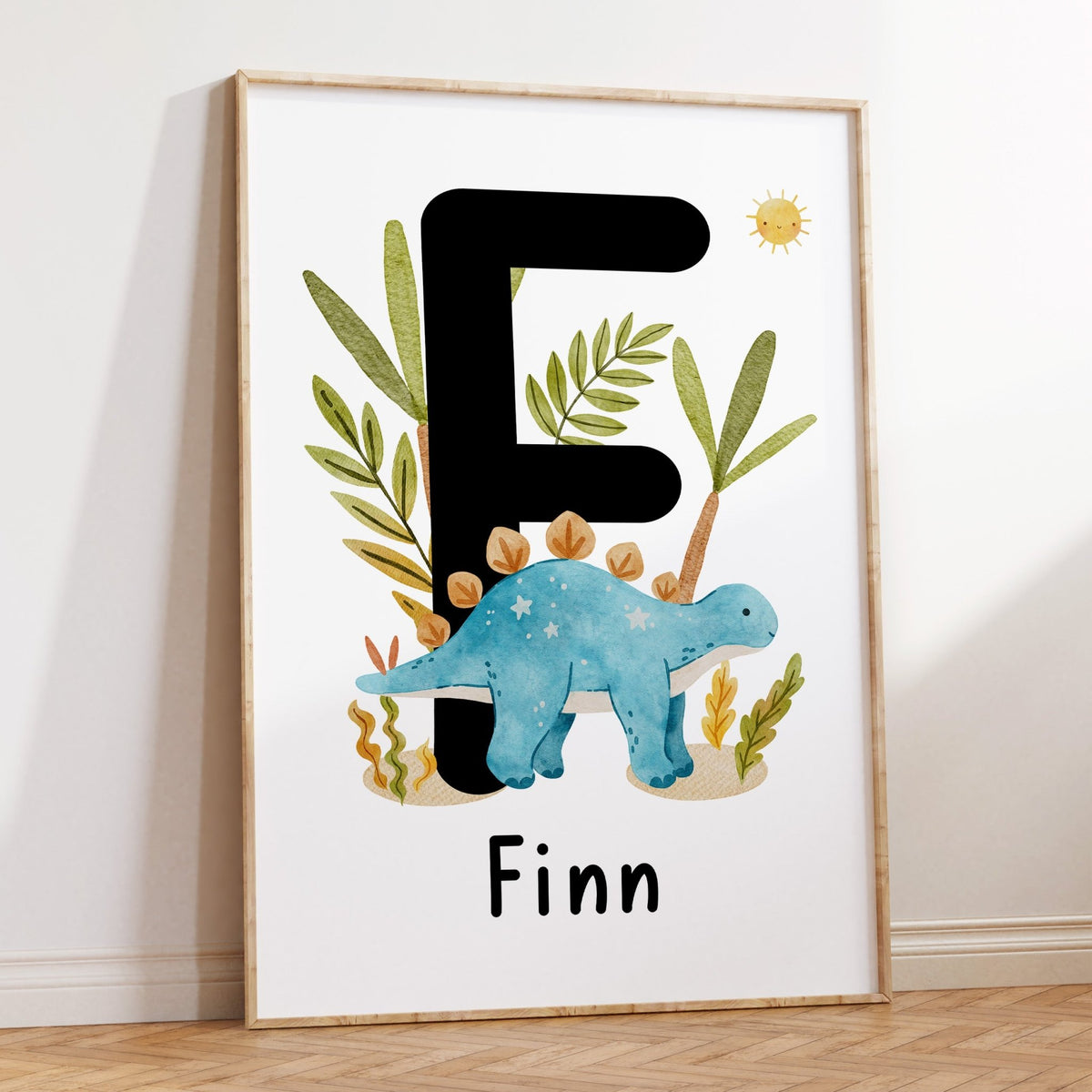 Unit price perThe perfect addition to the prehistoric themed nursery, bedroom or playroom decor is this personalised dinosaur name wall art print featuring a prehistoric wuerhosaurus.