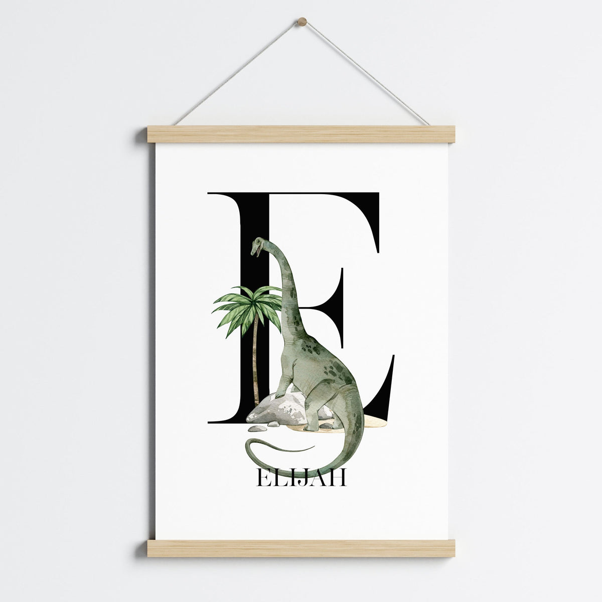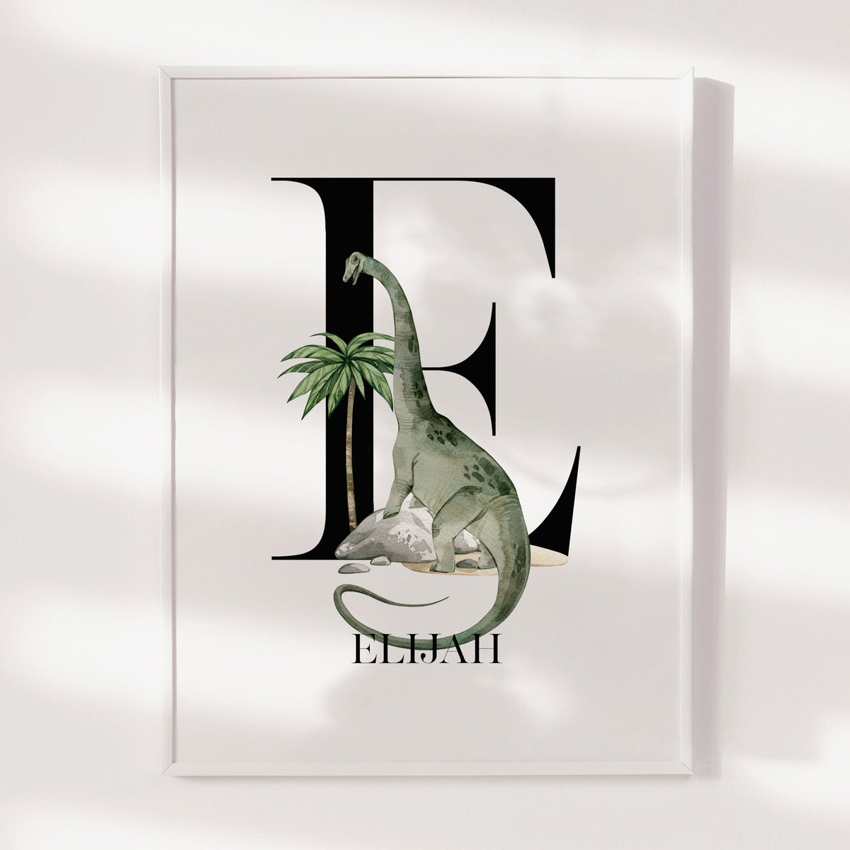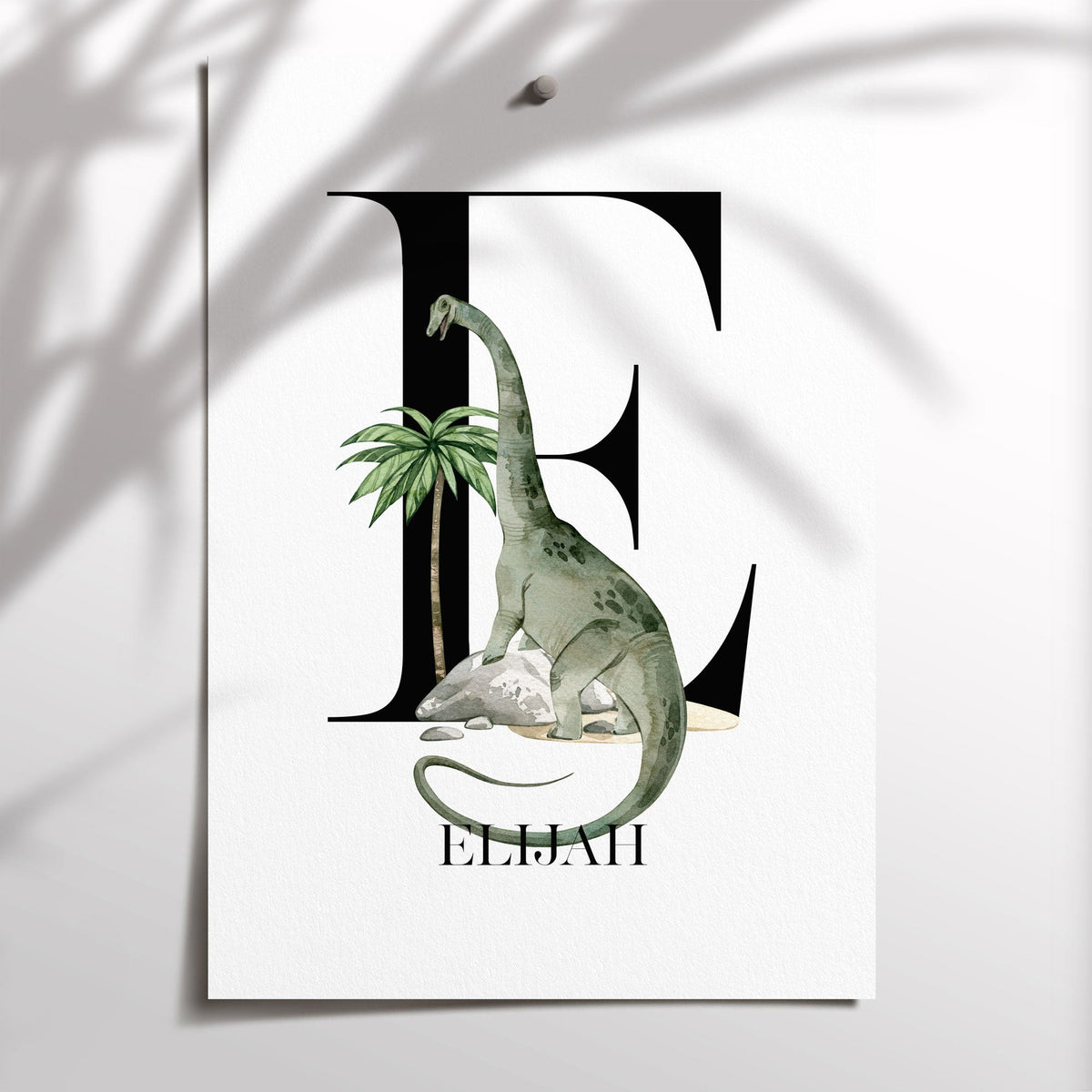 Unit price perThe perfect addition to the prehistoric themed nursery, bedroom or playroom decor is this personalised dinosaur name wall art print featuring a prehistoric diplodocus.