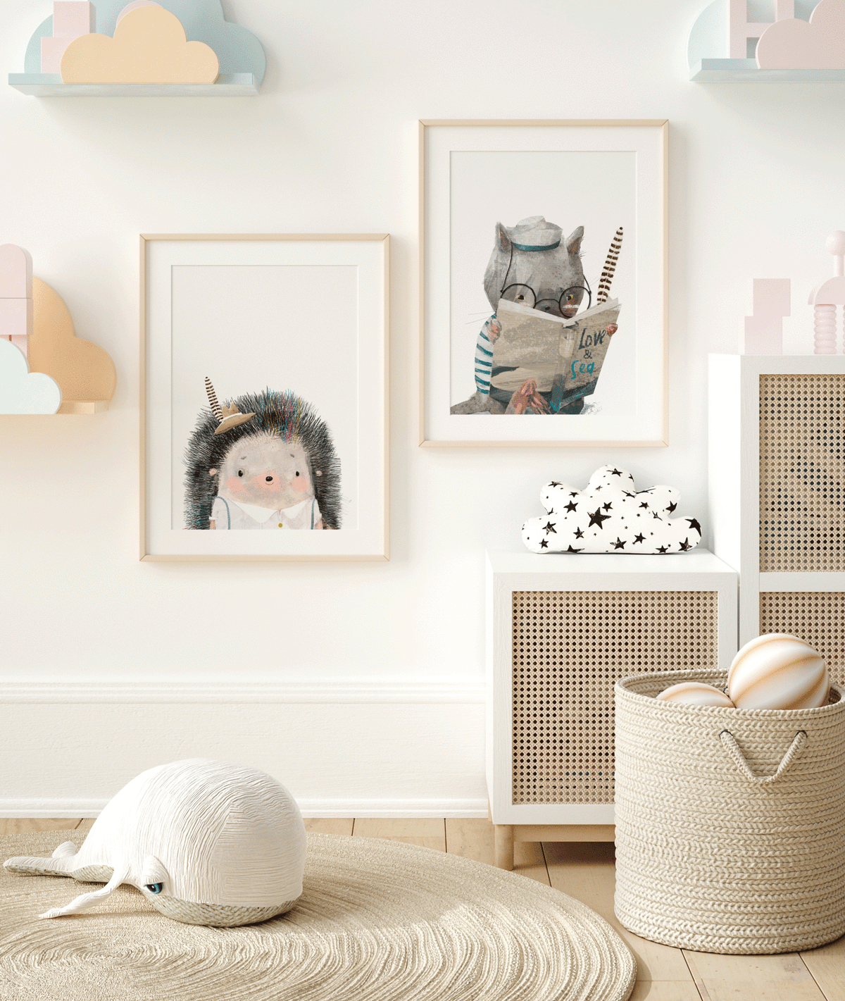 Perfect for the nautical or sea inspired nursery is this wall art print featuring an echidna sailor character. Use as a standalone piece or co-ordinate with our other matching art prints, perfect the oceanic themed nursery, bedroom or playroom.
