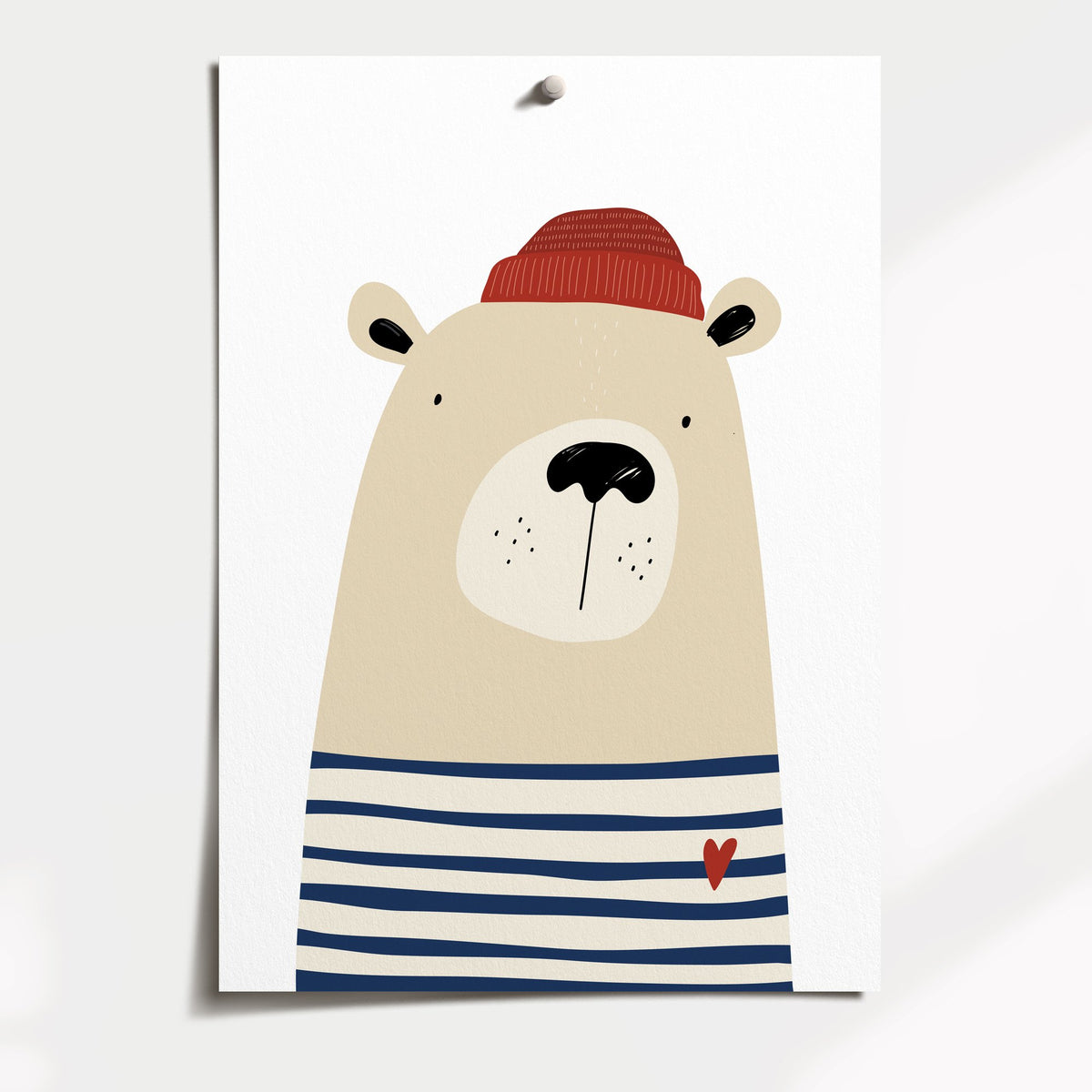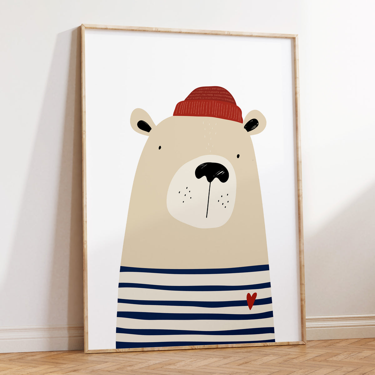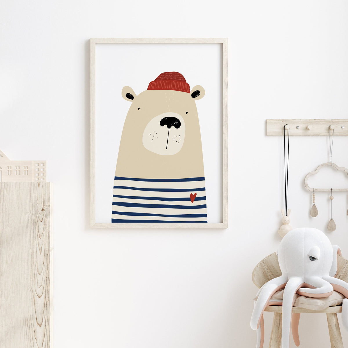 Unit price perA nautical inspired nursery wall art print featuring a sailor bear. Use as a standalone piece or co-ordinate with our other matching art prints, perfect the oceanic themed nursery, bedroom or playroom.
