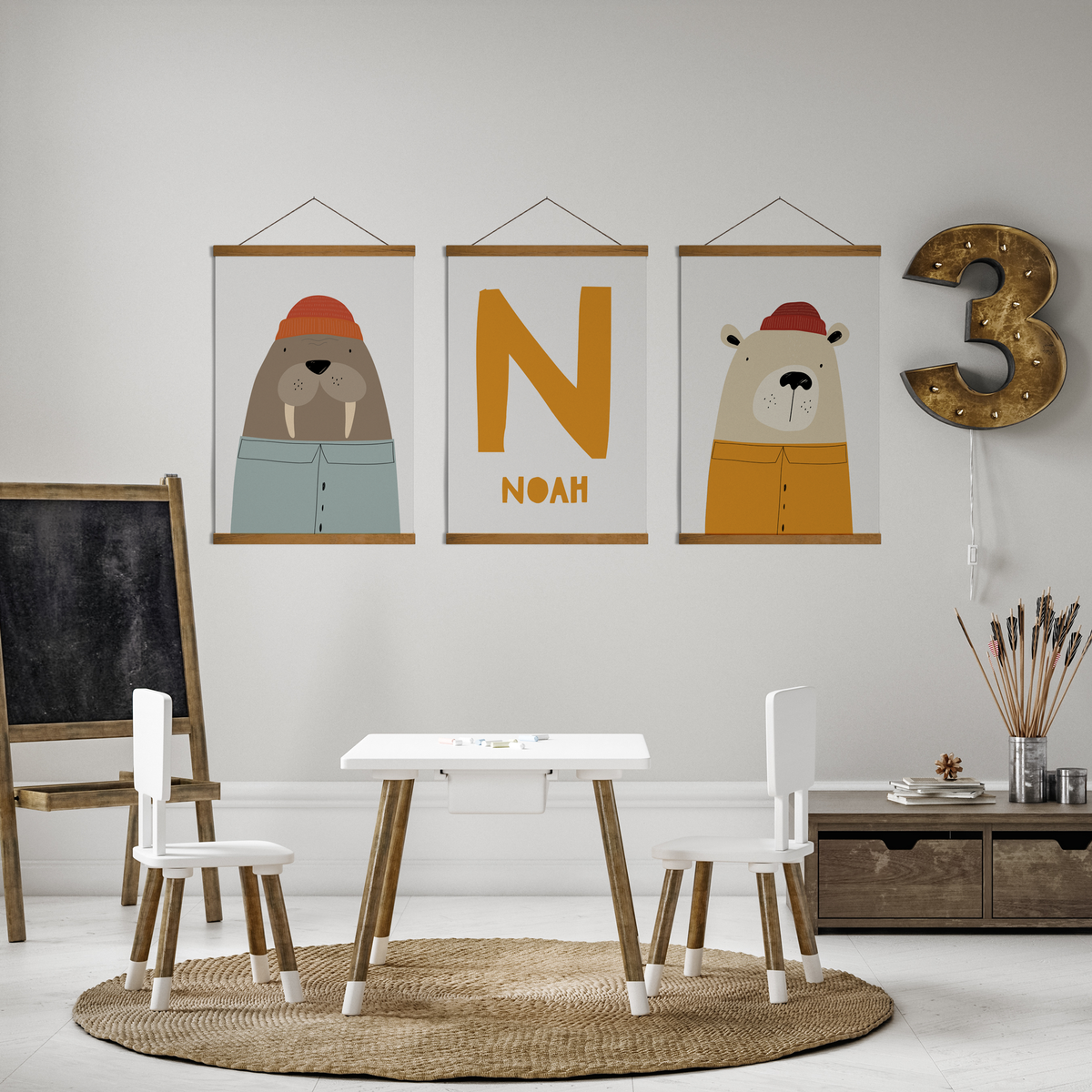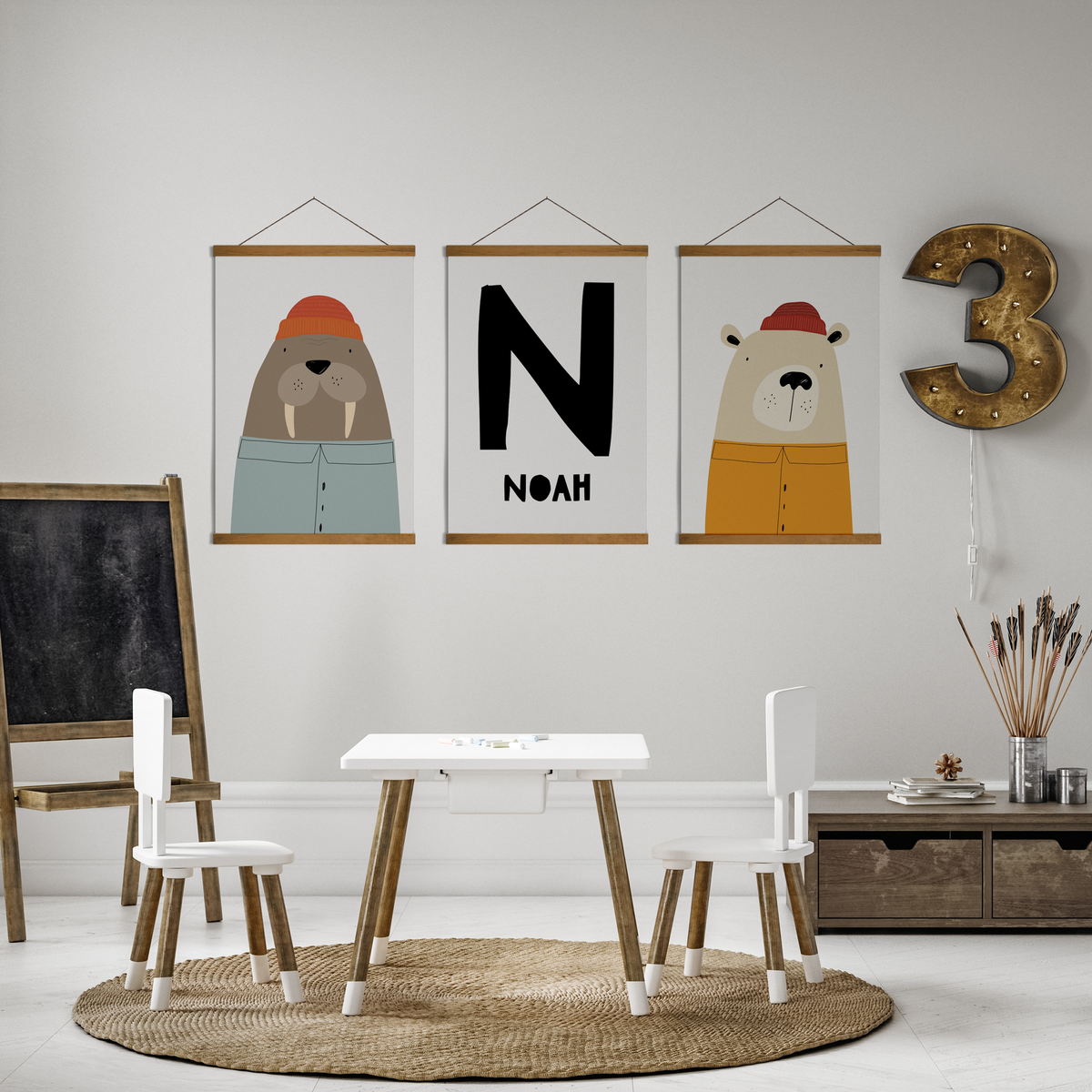 Walrus, Bear & Name Prints
