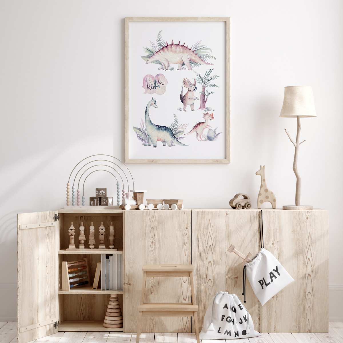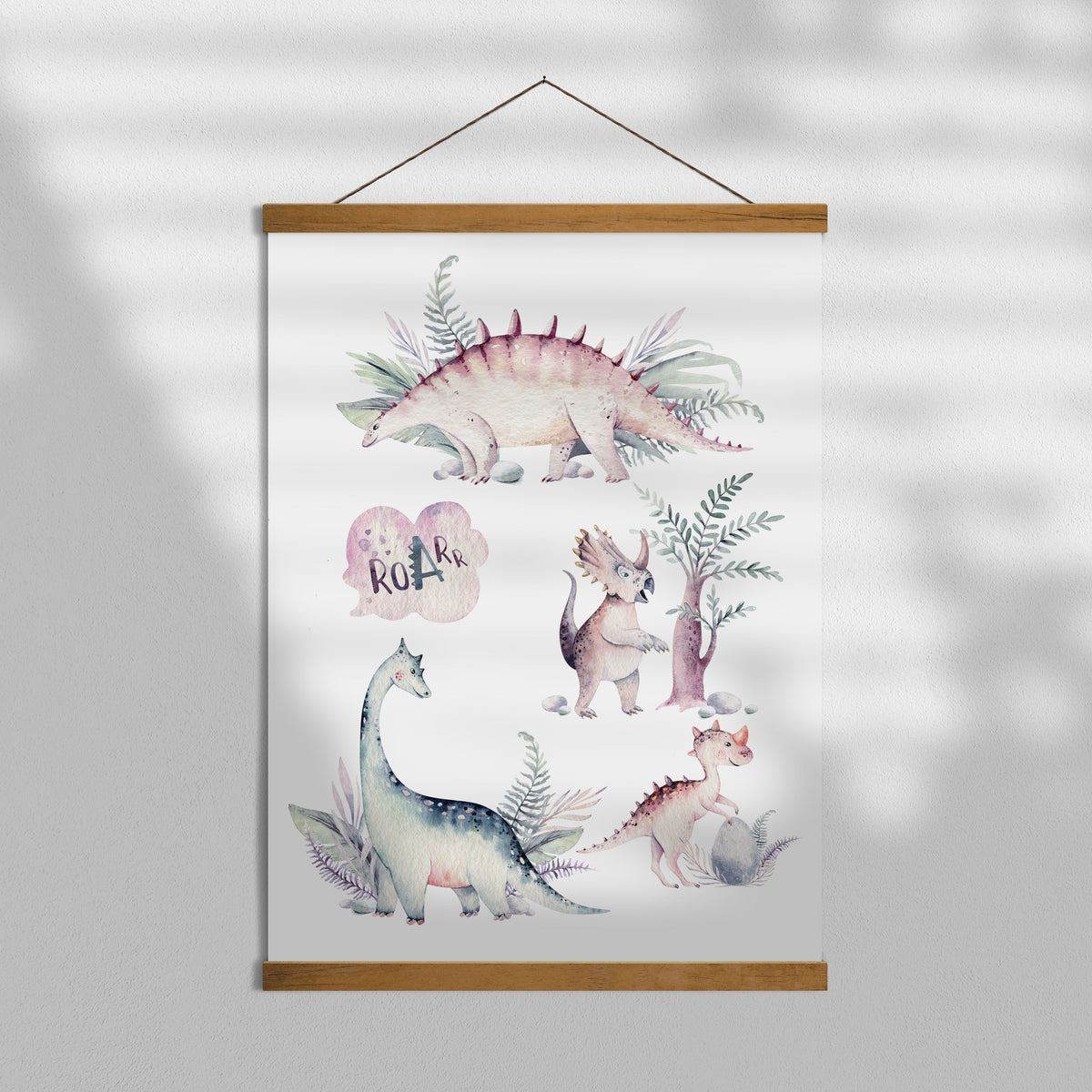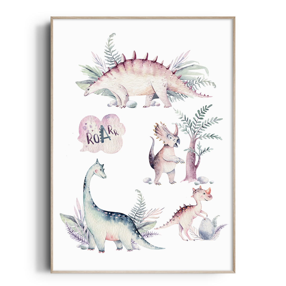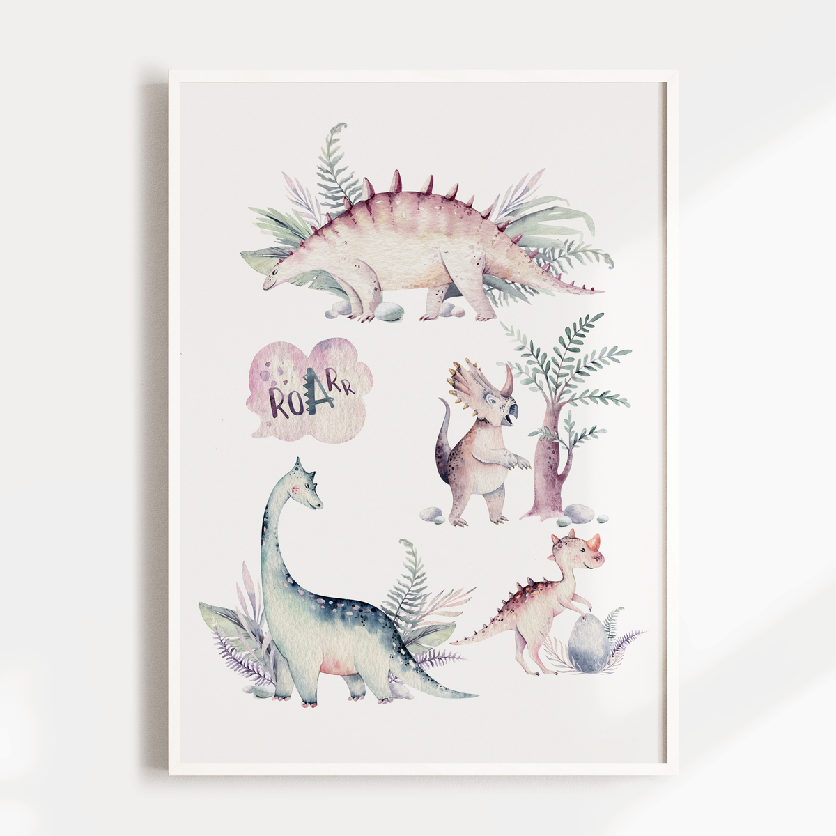 Unit price perFeaturing a collection of dinosaurs, all accentuated with prehistoric greenery and volcanoes, this wall art print will make the perfect addition to your little boys nursery, bedroom or playroom space.
