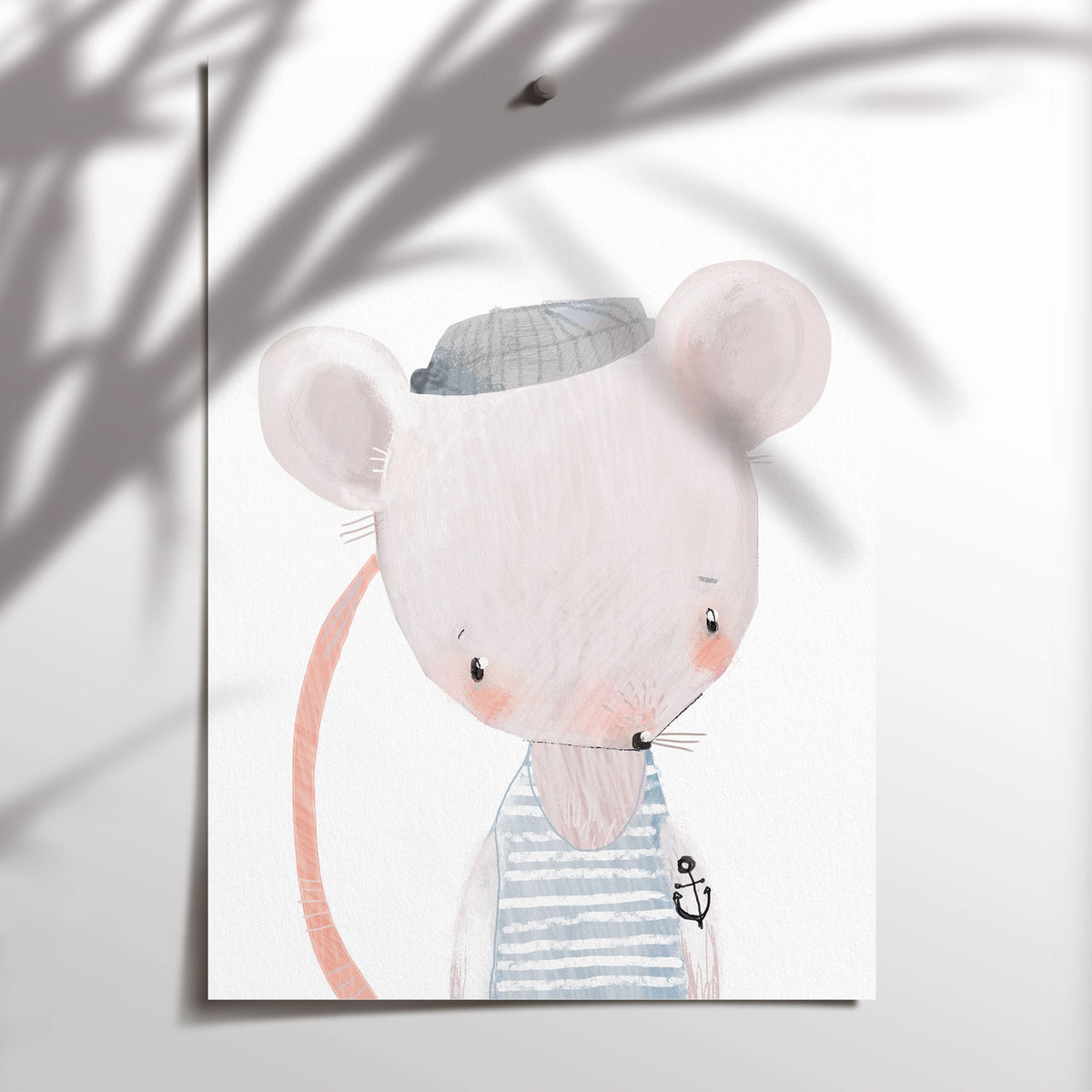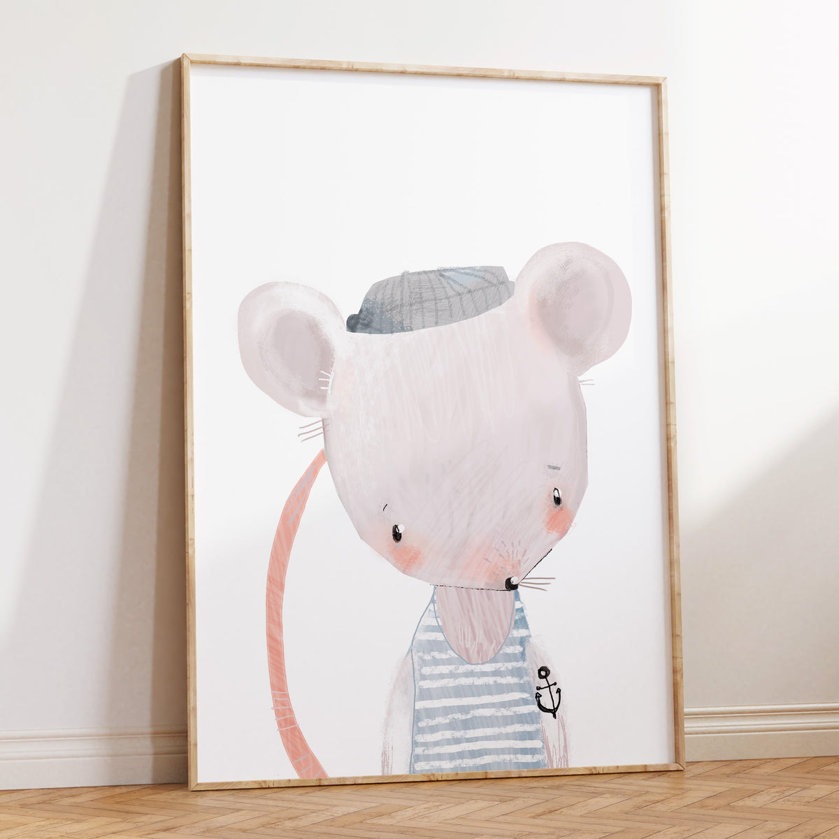 Unit price perPerfect for the nautical or sea inspired nursery is this wall art print featuring a mouse sailor. Use as a standalone piece or co-ordinate with our other matching art prints, perfect the oceanic themed nursery, bedroom or playroom.