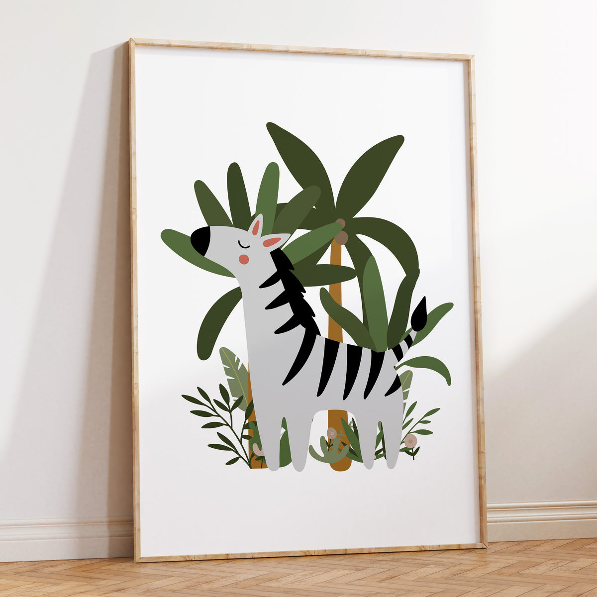 Perfect for the jungle or safari inspired nursery, children's bedroom or playroom décor is this zebra nursery wall art print. A perfect new baby gift, or a great way to add the finishing touches to your own child's space.