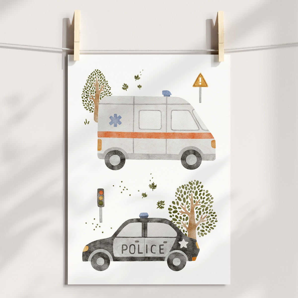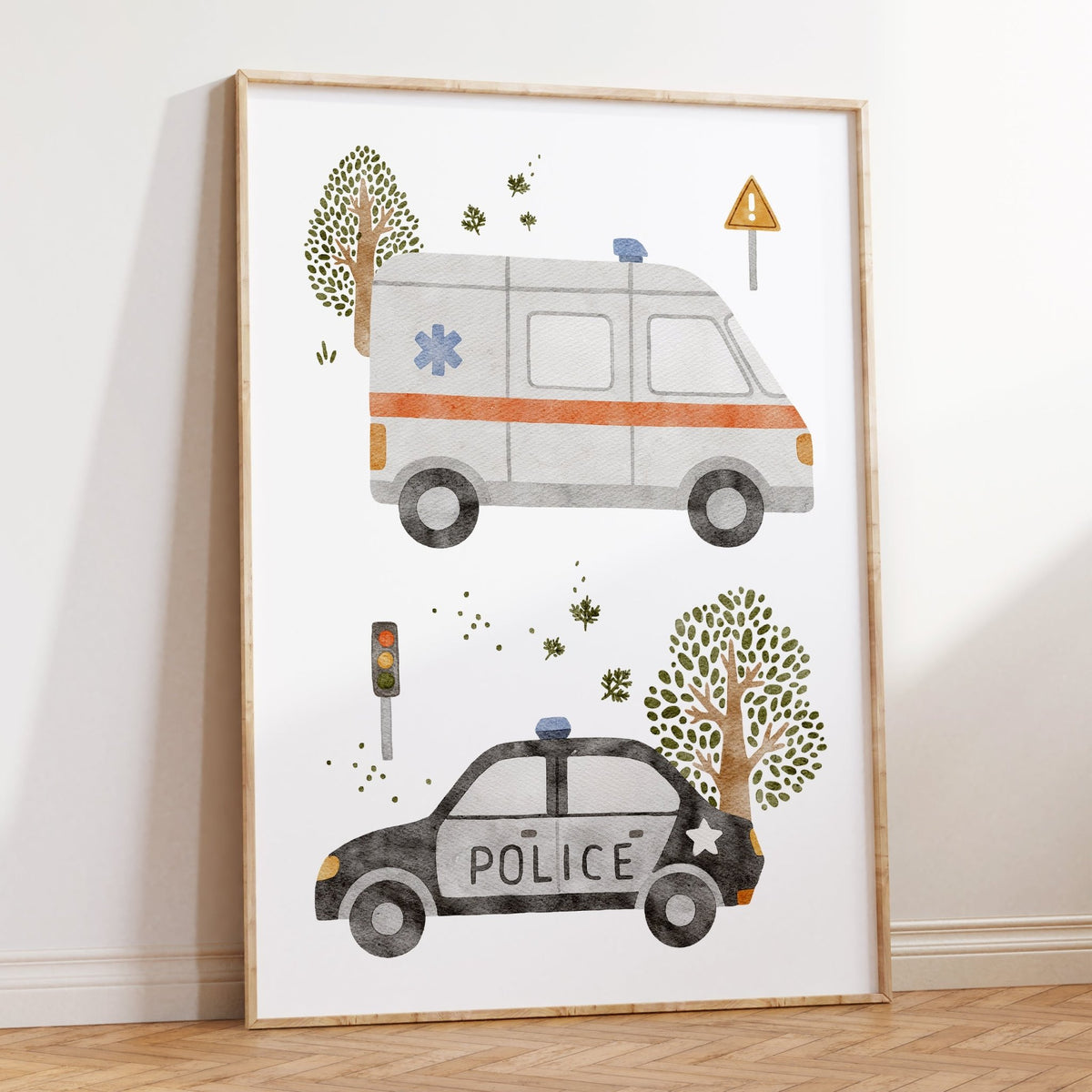 Unit price perThis fun emergency vehicle art print, featuring an ambulance & police car makes a perfect new baby boy gift, or a great way to add the finishing touches to your own child's nursery or bedroom space.