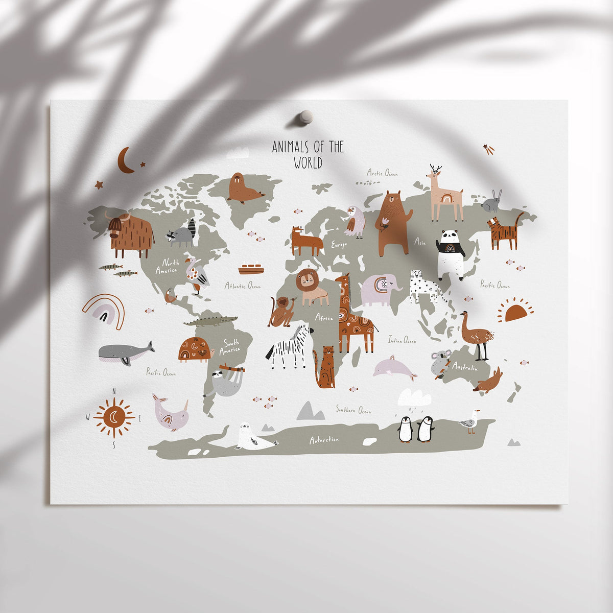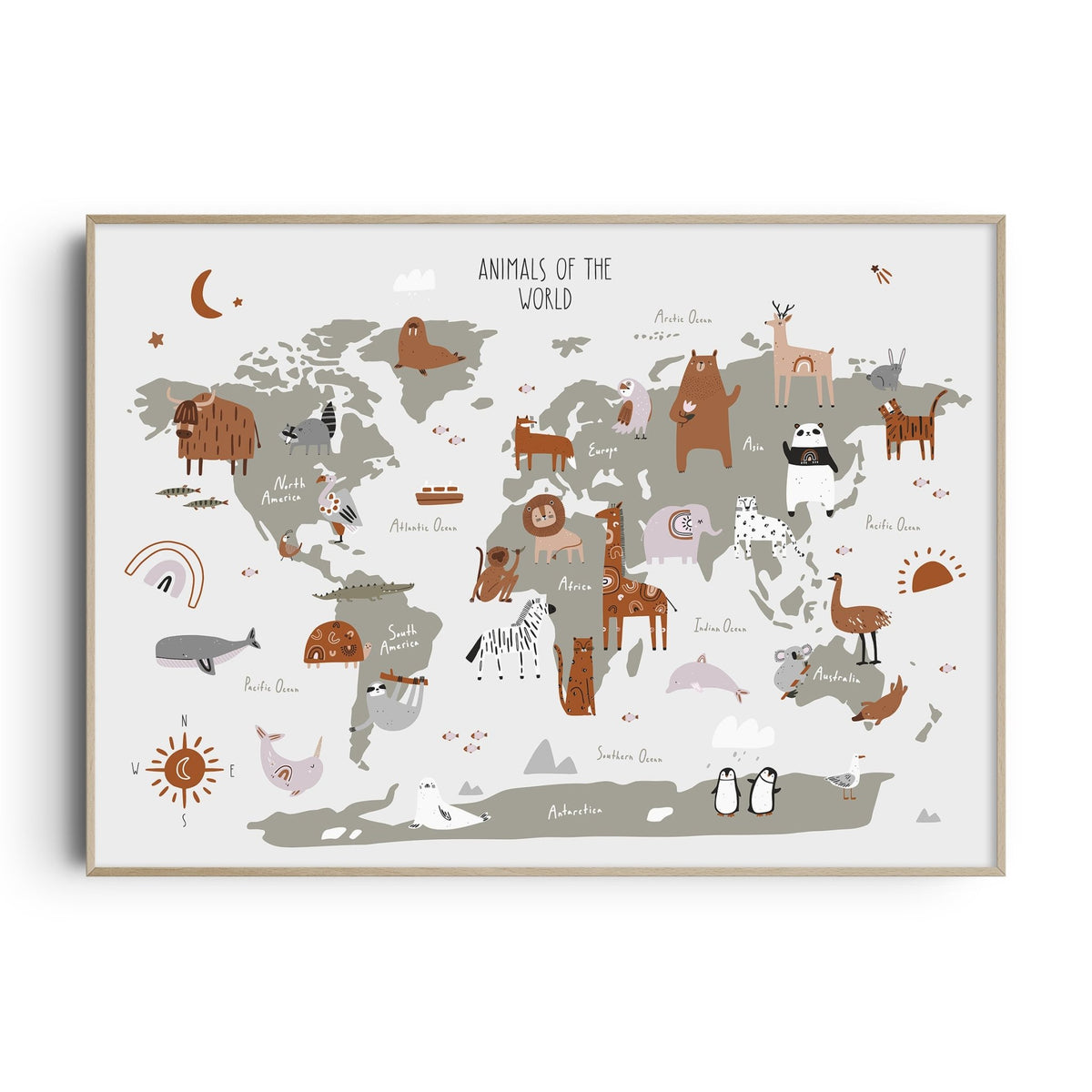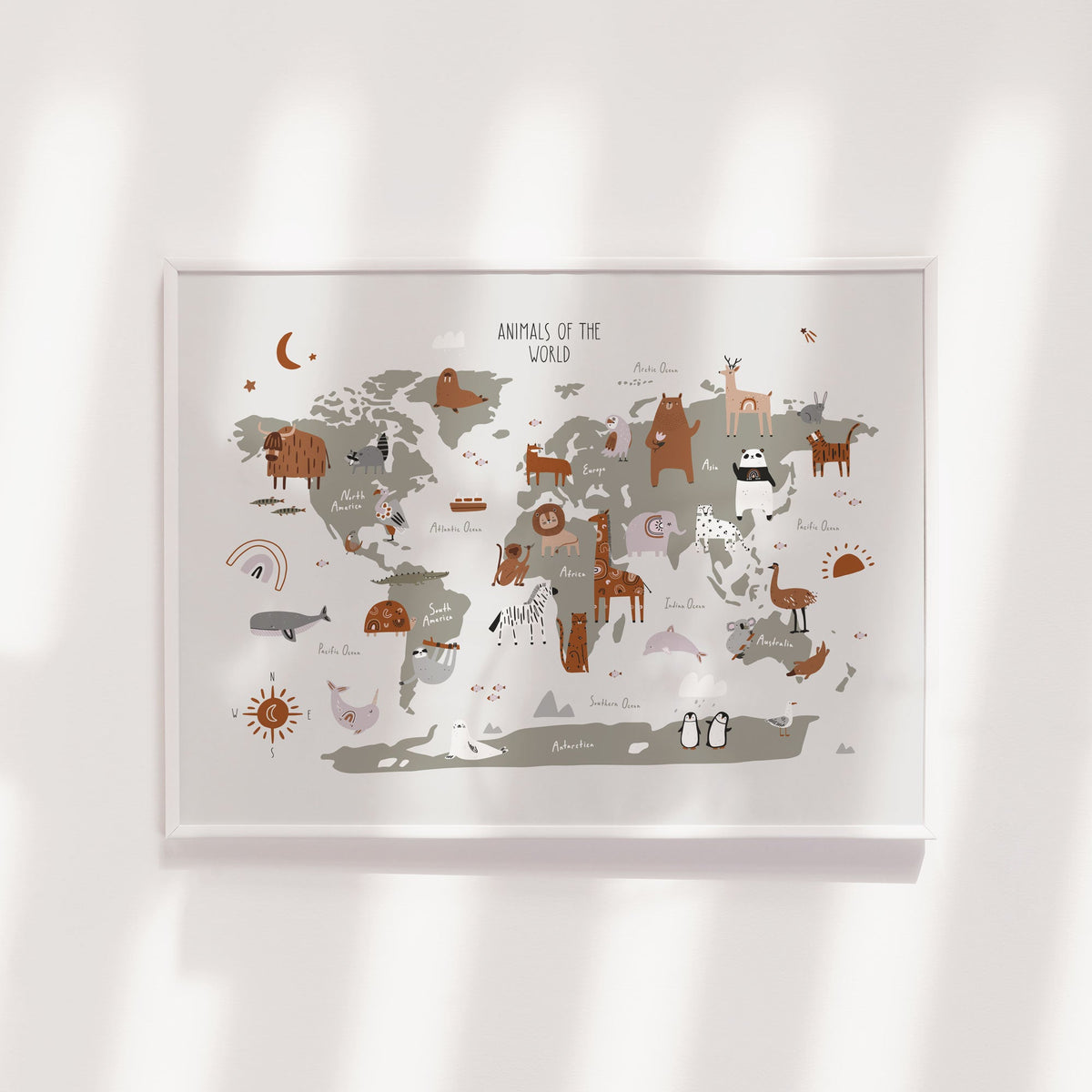 Unit price perThis fun animal world map poster is perfect for the jungle & safari inspired nursery or children's bedroom décor. A perfect new baby gift, or a great way to create a statement and add the finishing touches to your own child's space.