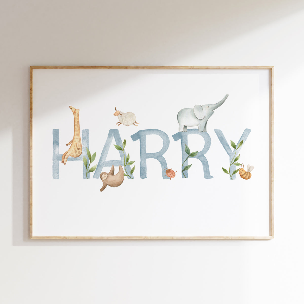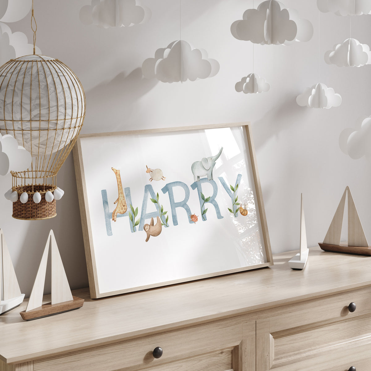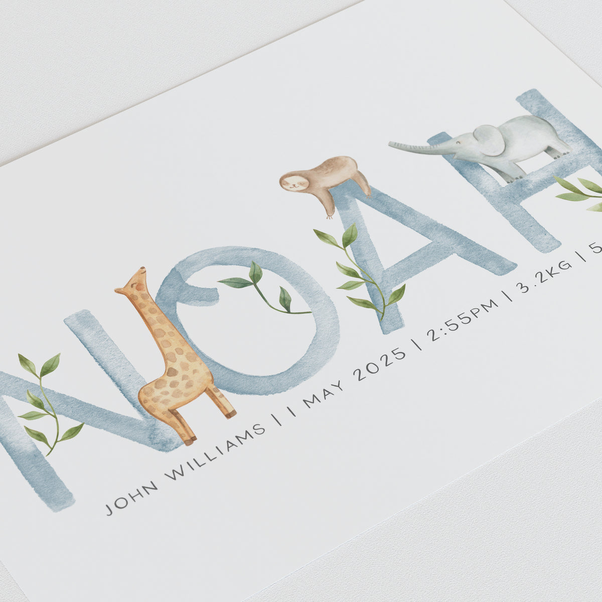Unit price perPerfect for the safari or animal themed nursery, this personalised baby name print is available in 3 colourways & with your choice of animals, it makes a perfect new baby gift or add the finishing touches to your own little boy's room.