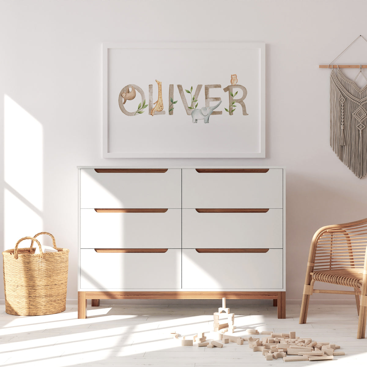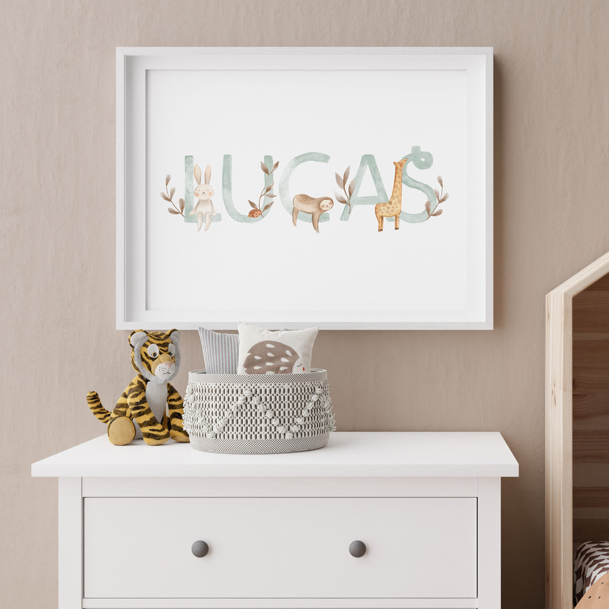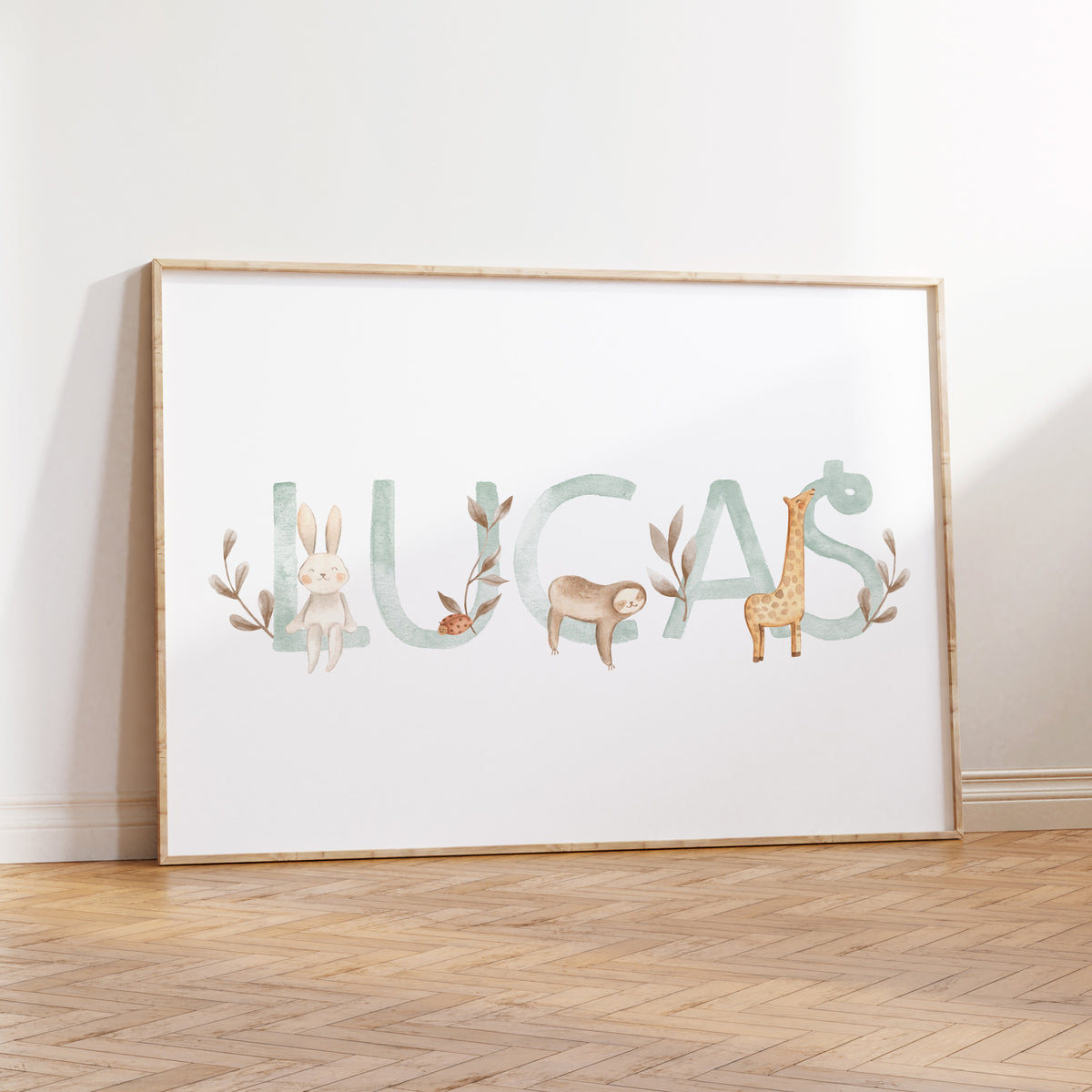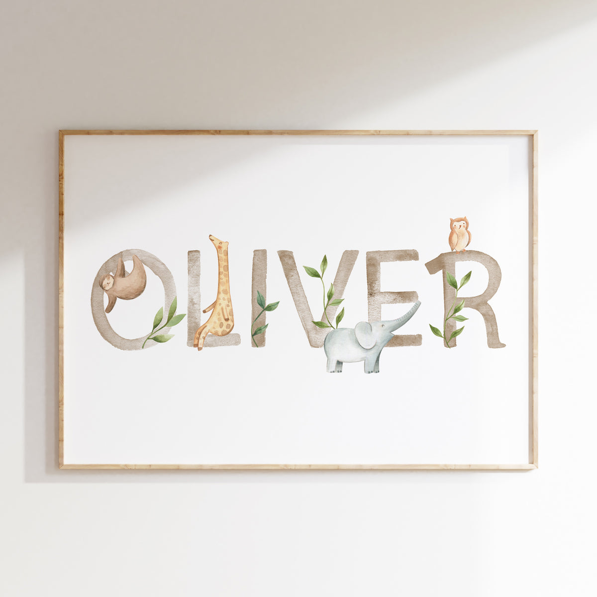 Unit price perPerfect for the safari or animal themed nursery, this personalised baby name print is available in 3 colourways & with your choice of animals, it makes a perfect new baby gift or add the finishing touches to your own little boy's room.