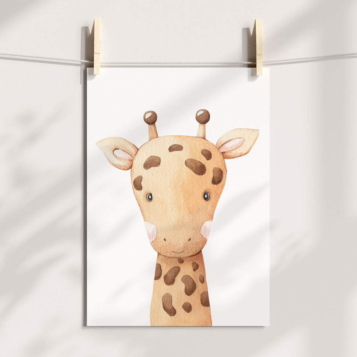 Unit price perThis watercolour giraffe wall art print will make the perfect addition to your child's safari or jungle animal themed nursery, bedroom, or playroom decor. Pair it with one of our many other baby animal prints or use as a stand-alone statement.