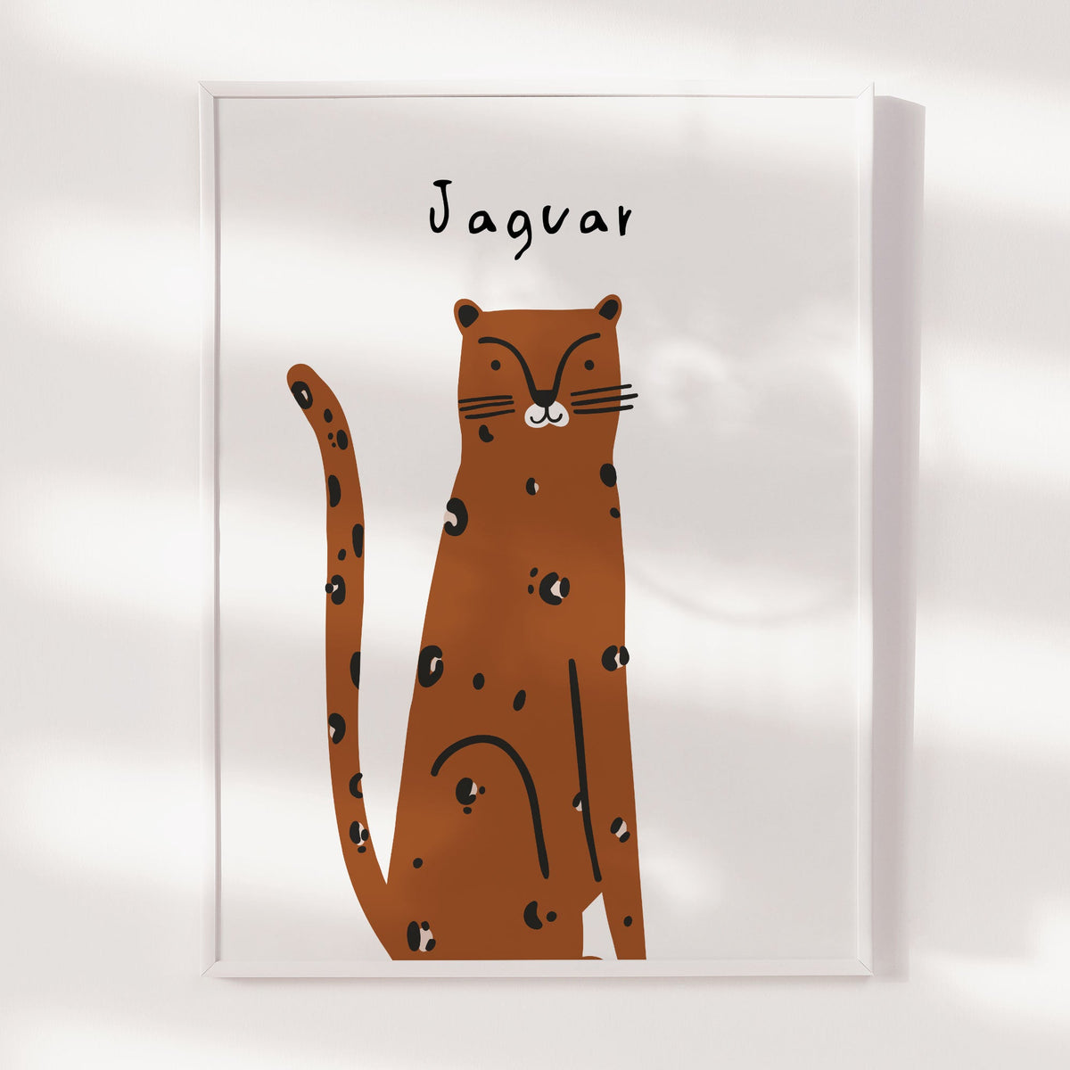 Unit price perPerfect for the jungle & safari animal inspired nursery or children's bedroom décor is this jaguar print. Use as a standalone piece or mix and match with our other animal prints in this range. A perfect new baby gift, or a great way to add the finishing touches to your own child's space.