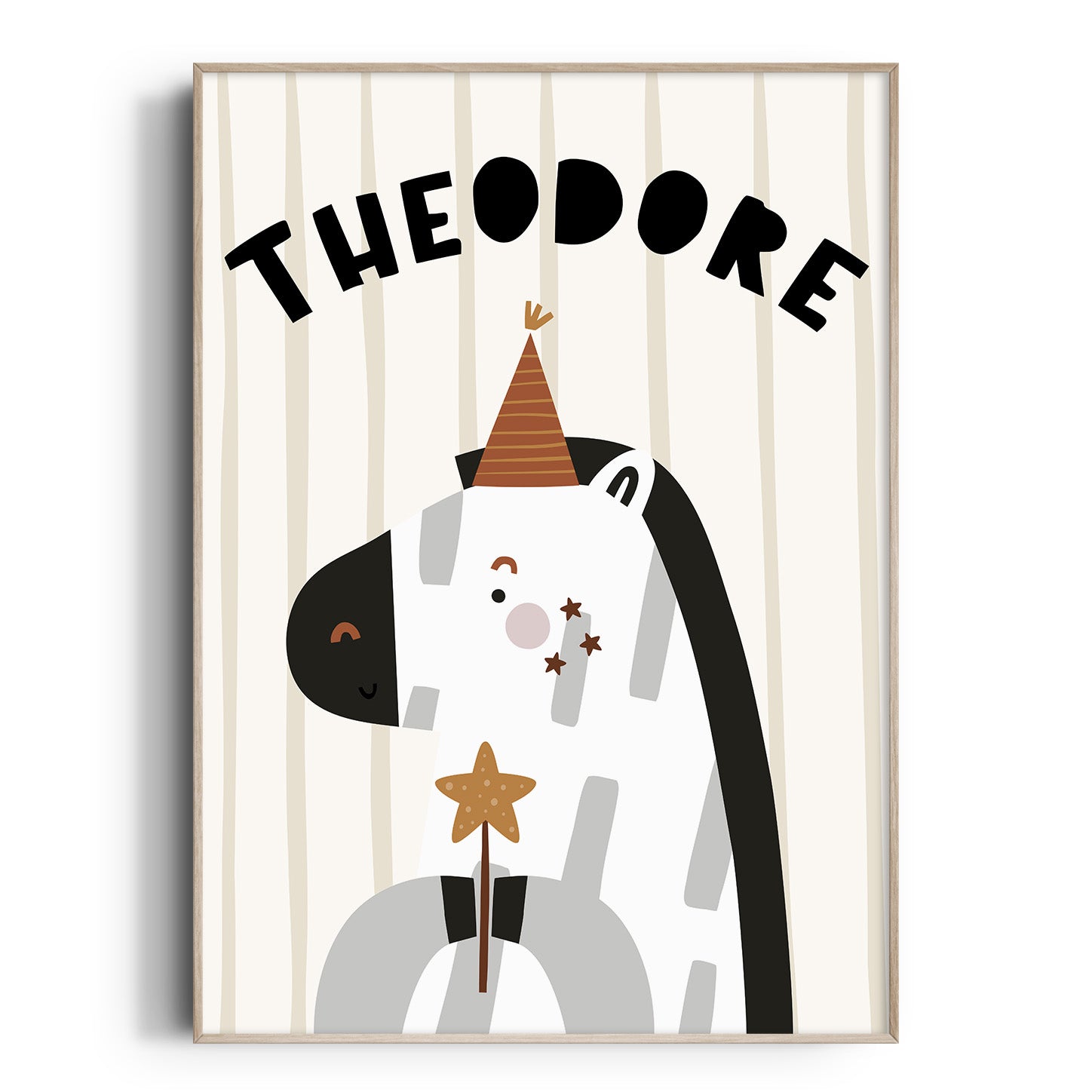 Perfect for the safari, jungle or animal themed nursery, this gender-neutral personalised zebra baby name print makes a perfect new baby gift or add the finishing touches to your own little one's room.