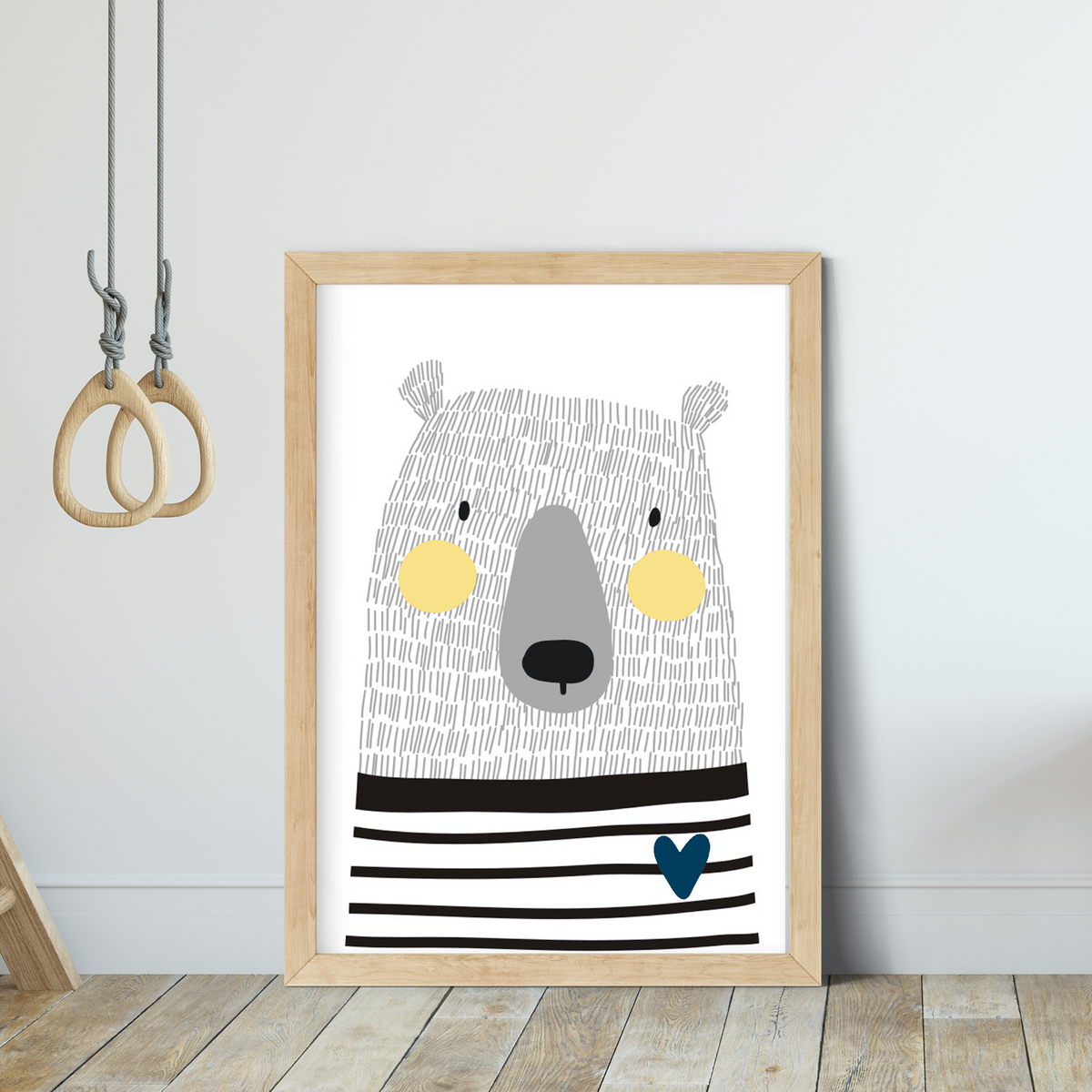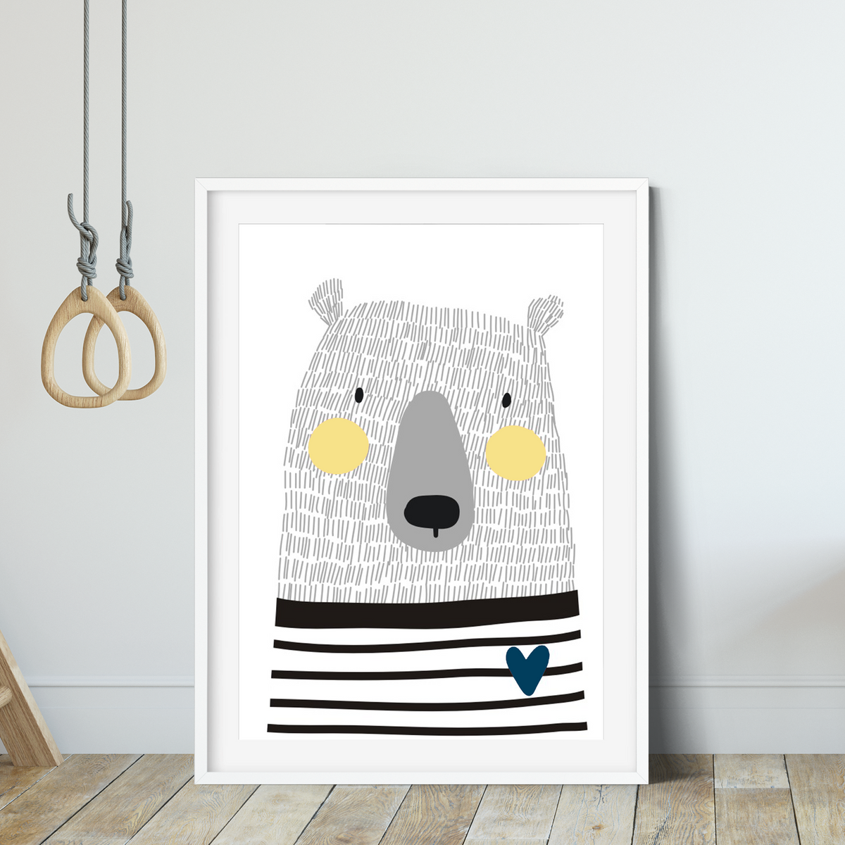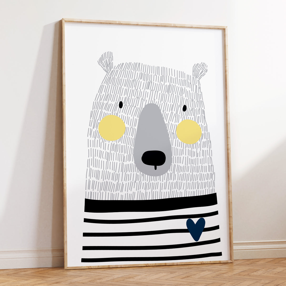 Unit price perBoys wall art. Scandi bear nursery wall art print.