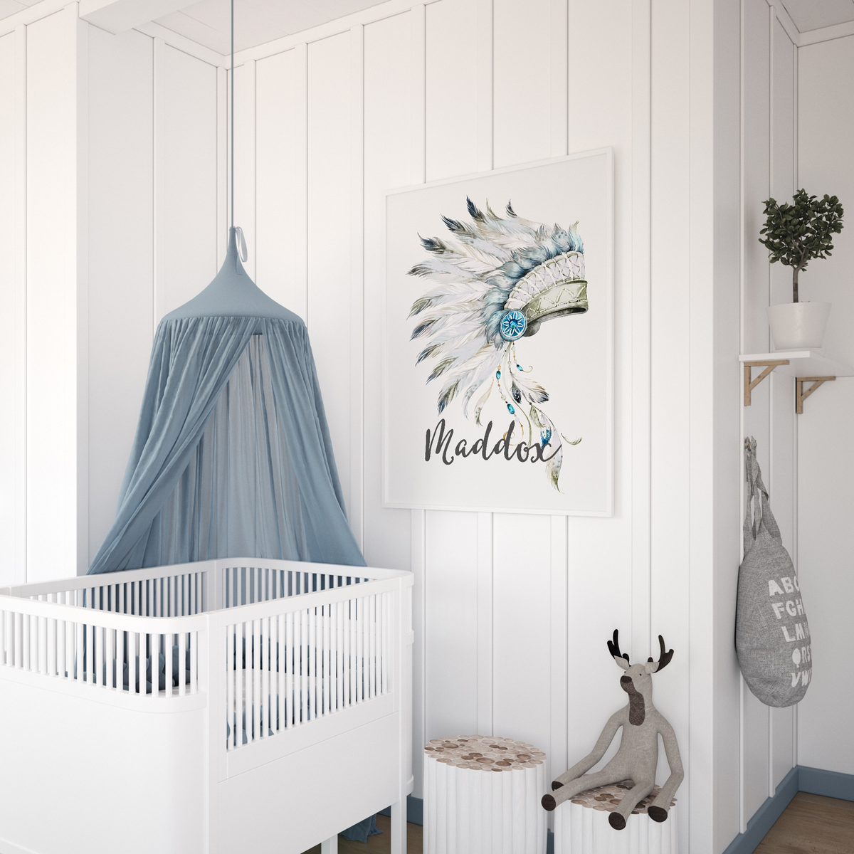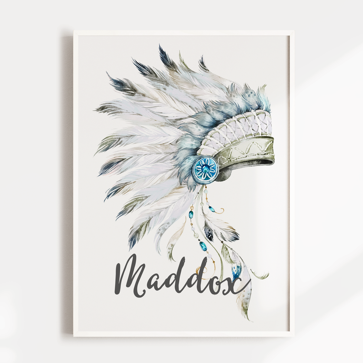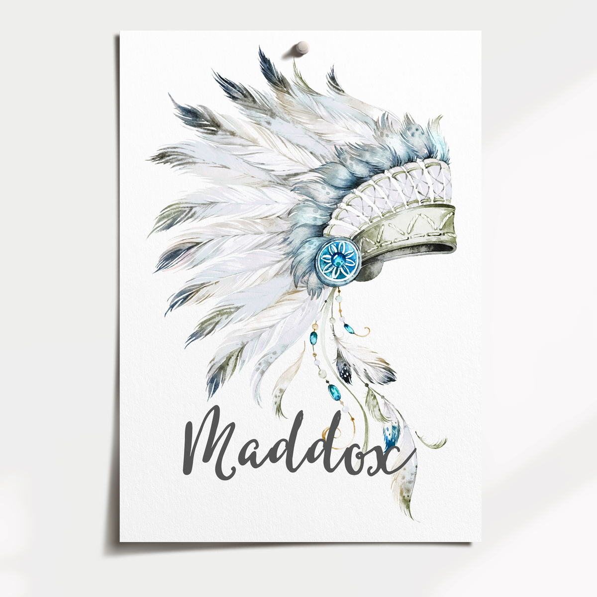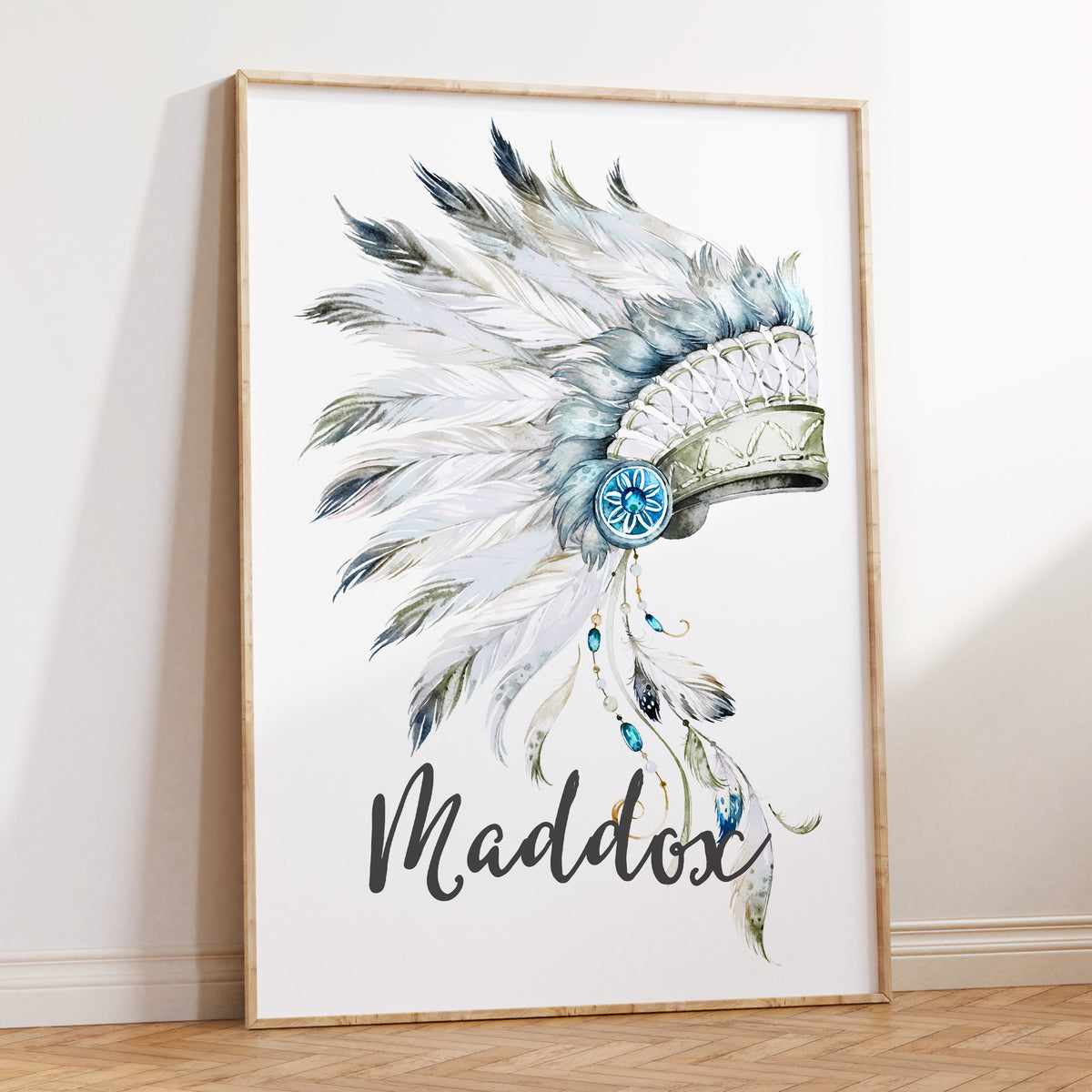 Unit price perCustomised Tribal Boho watercolour headdress wall art print, personalised with your child's name.