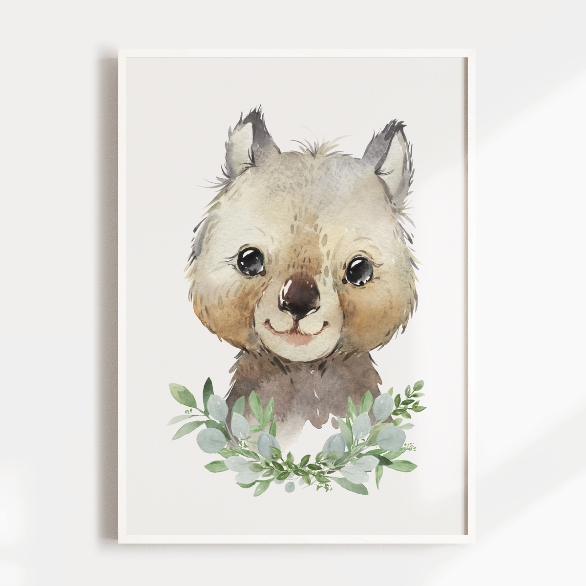 This set of three nursery prints features distinct, high-quality illustrations of Australia's iconic native animals: koala, wombat, and kangaroo. This ready-to-hang wall art is perfect for adorning your child's nursery. The vibrant colors, detailed depictions and premium materials ensure a lifetime of enjoyment.