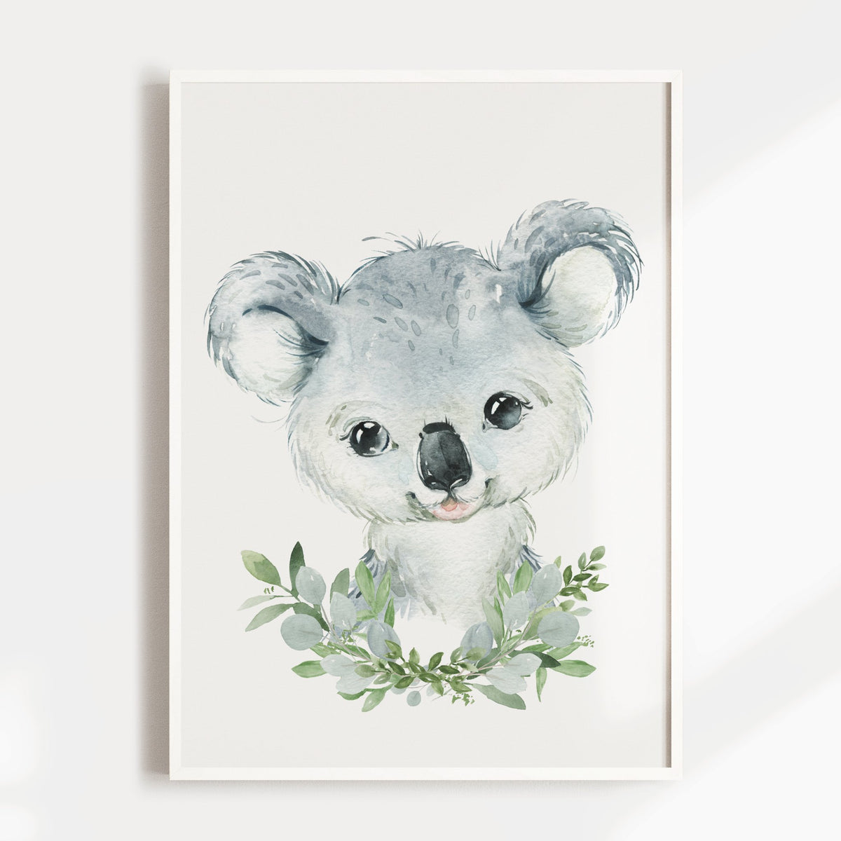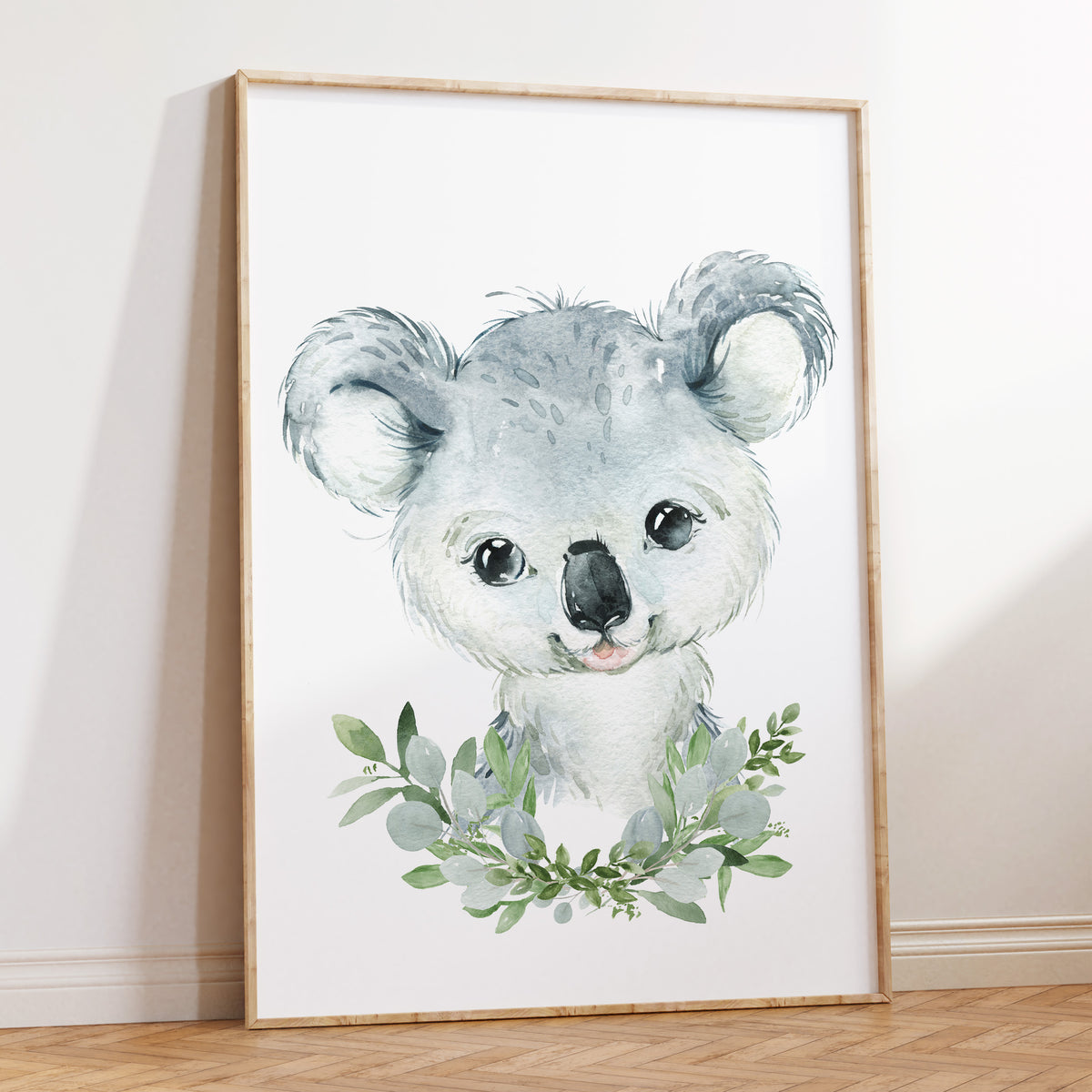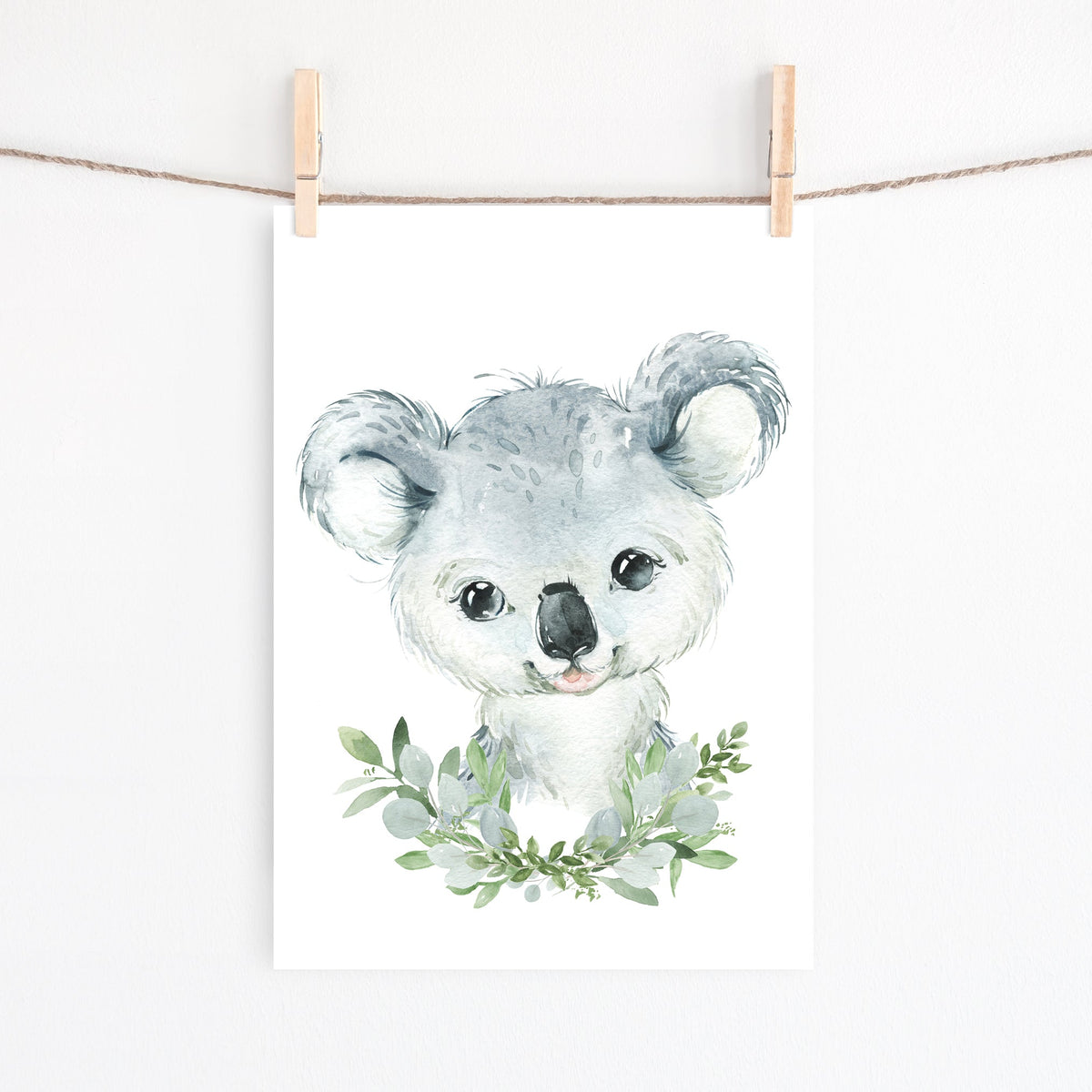 This watercolour baby koala wall art, would make a lovely addition to a nursery, child's bedroom, or playroom. Pair it with one of our many other baby Australian animal prints or use as a stand alone statement.