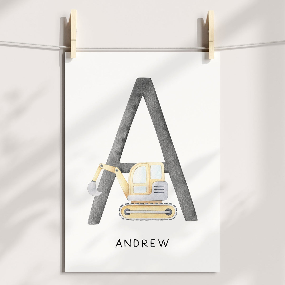 Unit price perPerfect for the construction, vehicle or truck themed nursery, bedroom or playroom, this digger name print is one's with your little one's details. A perfect new baby boy gift, or a great way to add the finishing touches to your own child's nursery or bedroom space.