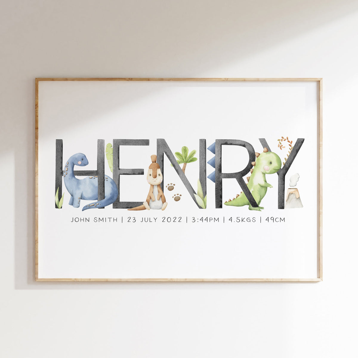 Unit price perPerfect for the dinosaur or Jurassic themed nursery, this personalised baby name print is available with your choice of dinosaurs along with the option to add your little one's birth details, it makes a perfect new baby gift or add the finishing touches to your own little boy's room.