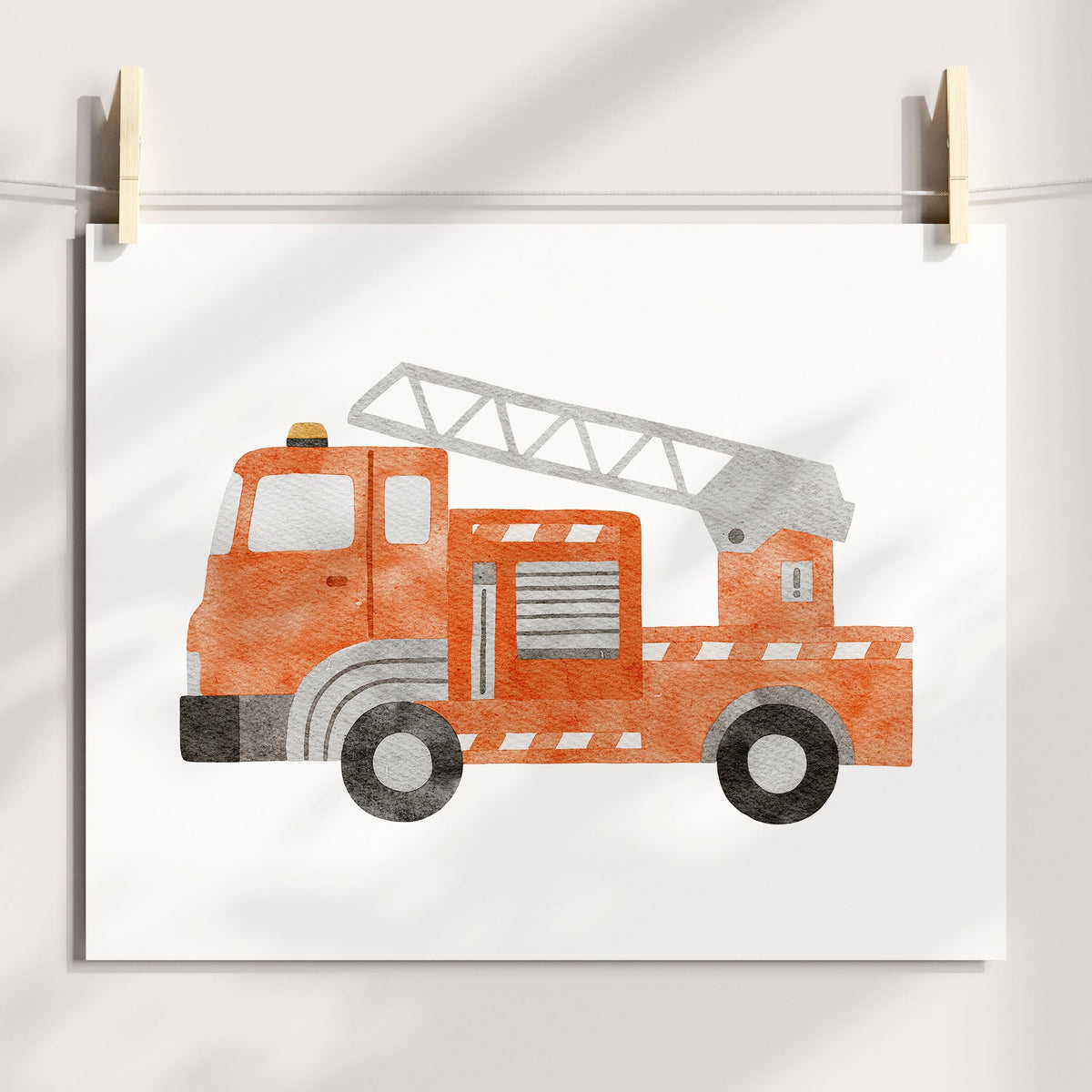 Unit price perPerfect of the transportation or emergency vehicle themed nursery, bedroom or playroom, our watercolour fire truck print can be used as a standalone piece or teamed with our other emergency vehicle prints to create a gallery wall.