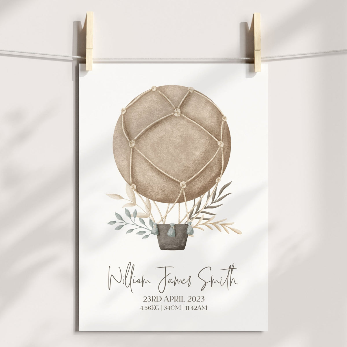 Boho Hot Air Balloon Birth Print