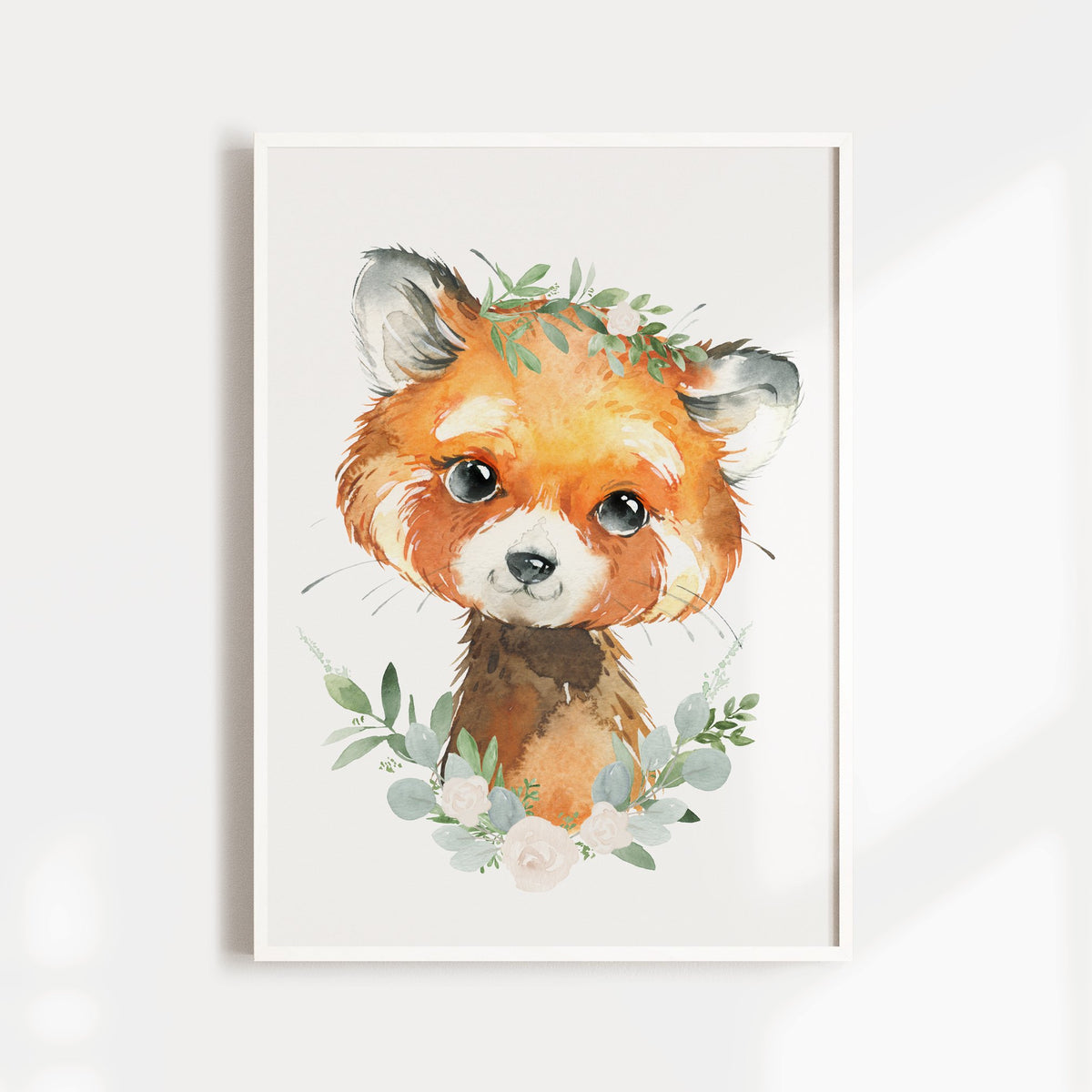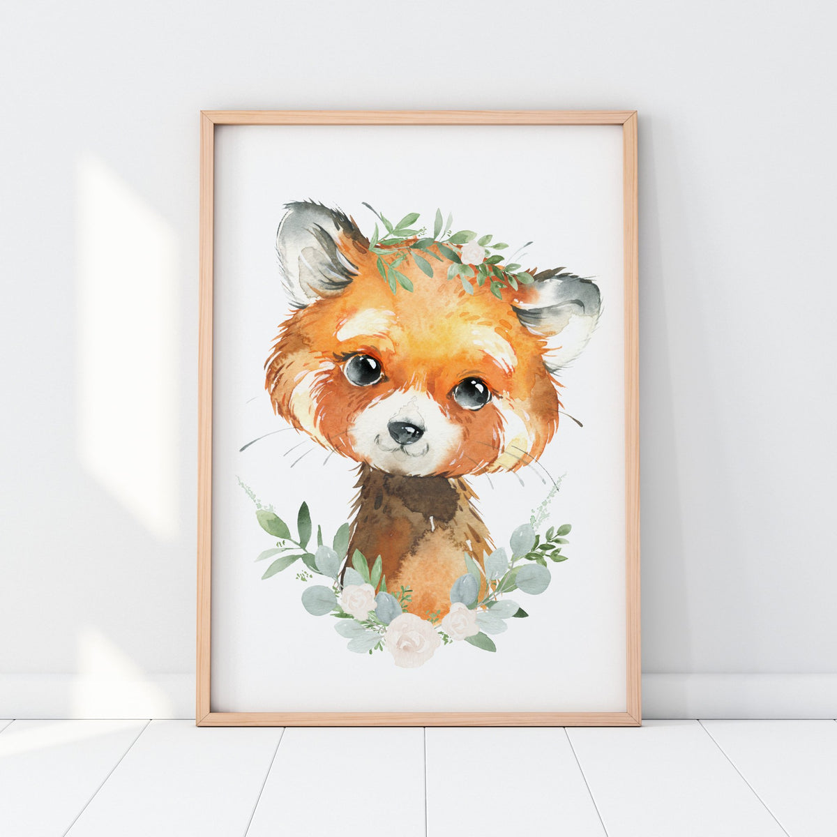 This watercolour baby red panda wall art, would make a lovely addition to a nursery, child's bedroom, or playroom. Pair it with one of our many other baby safari animal prints or use as a stand alone statement.