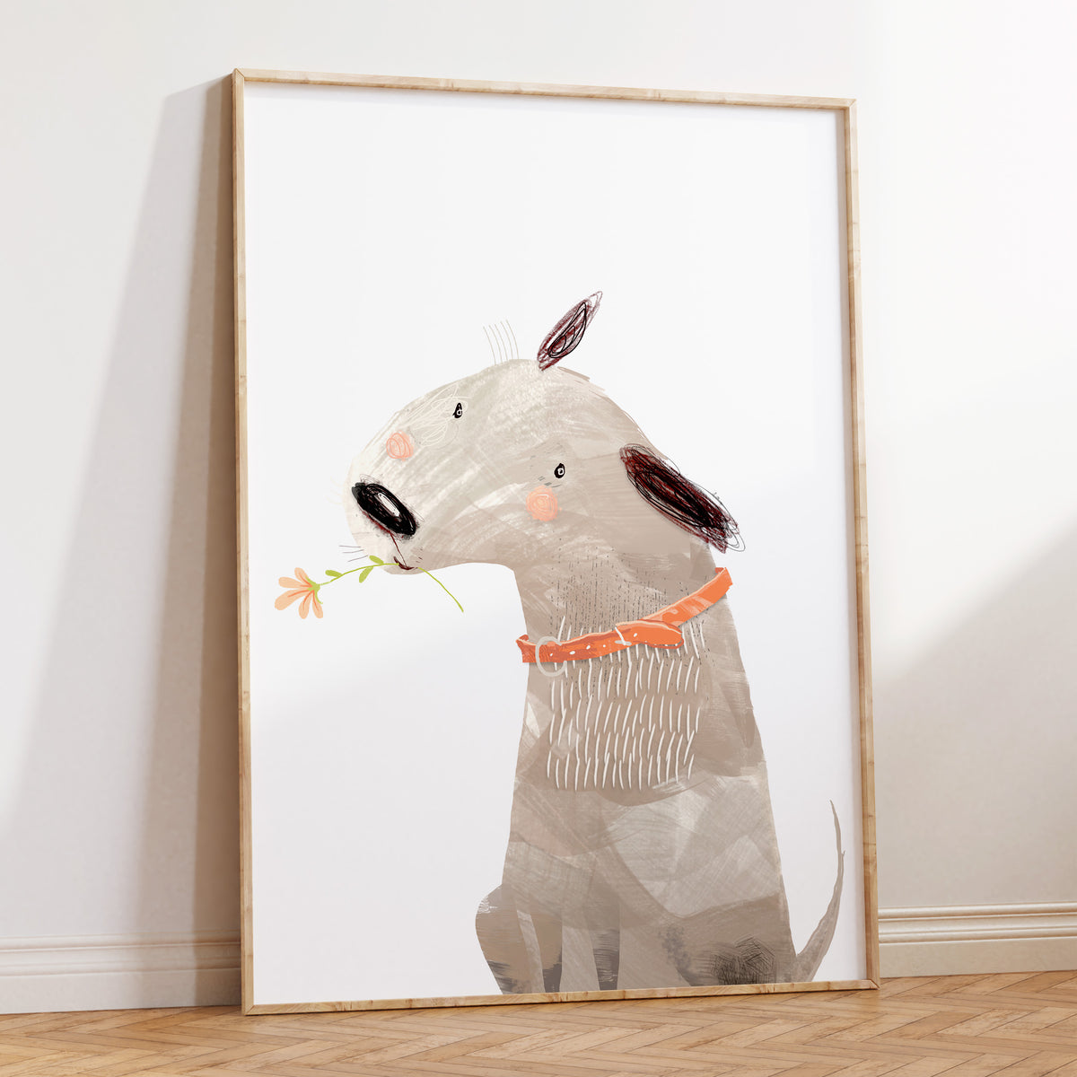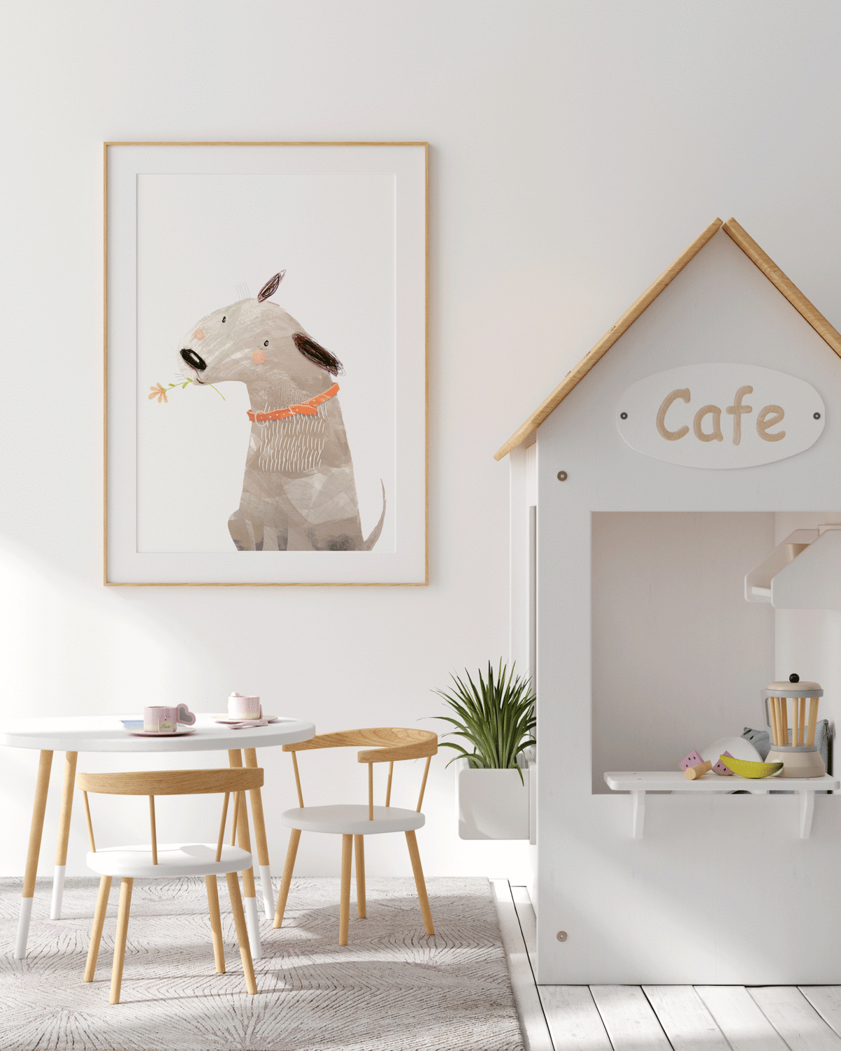 Unit price perThis pretty boho inspired dog wall art print, will add the finishing touch to your baby girls nursery or bedroom décor. Use as a standalone piece or mix with our other 'Little Miss' character prints.
