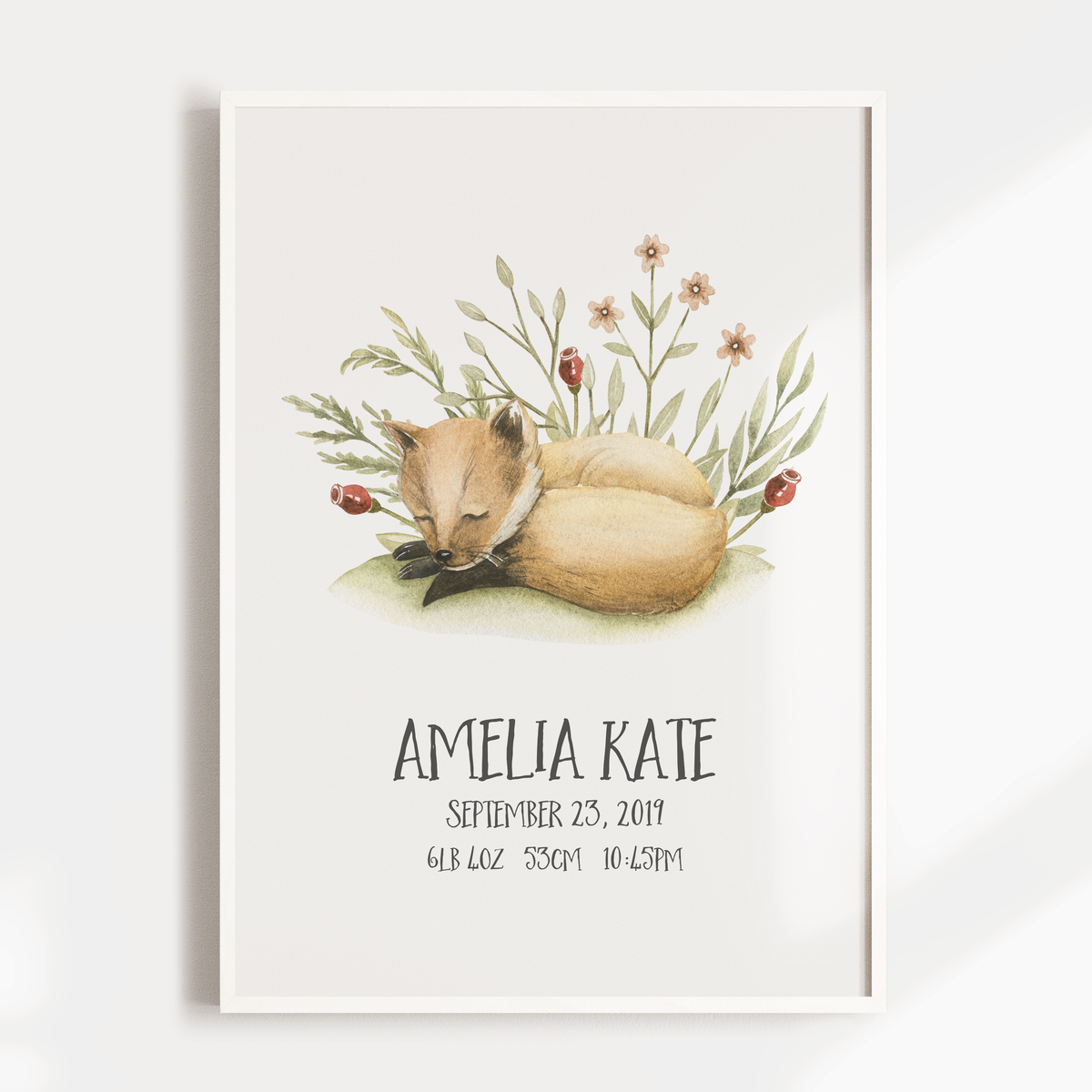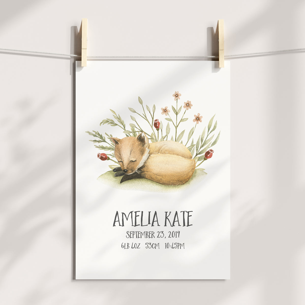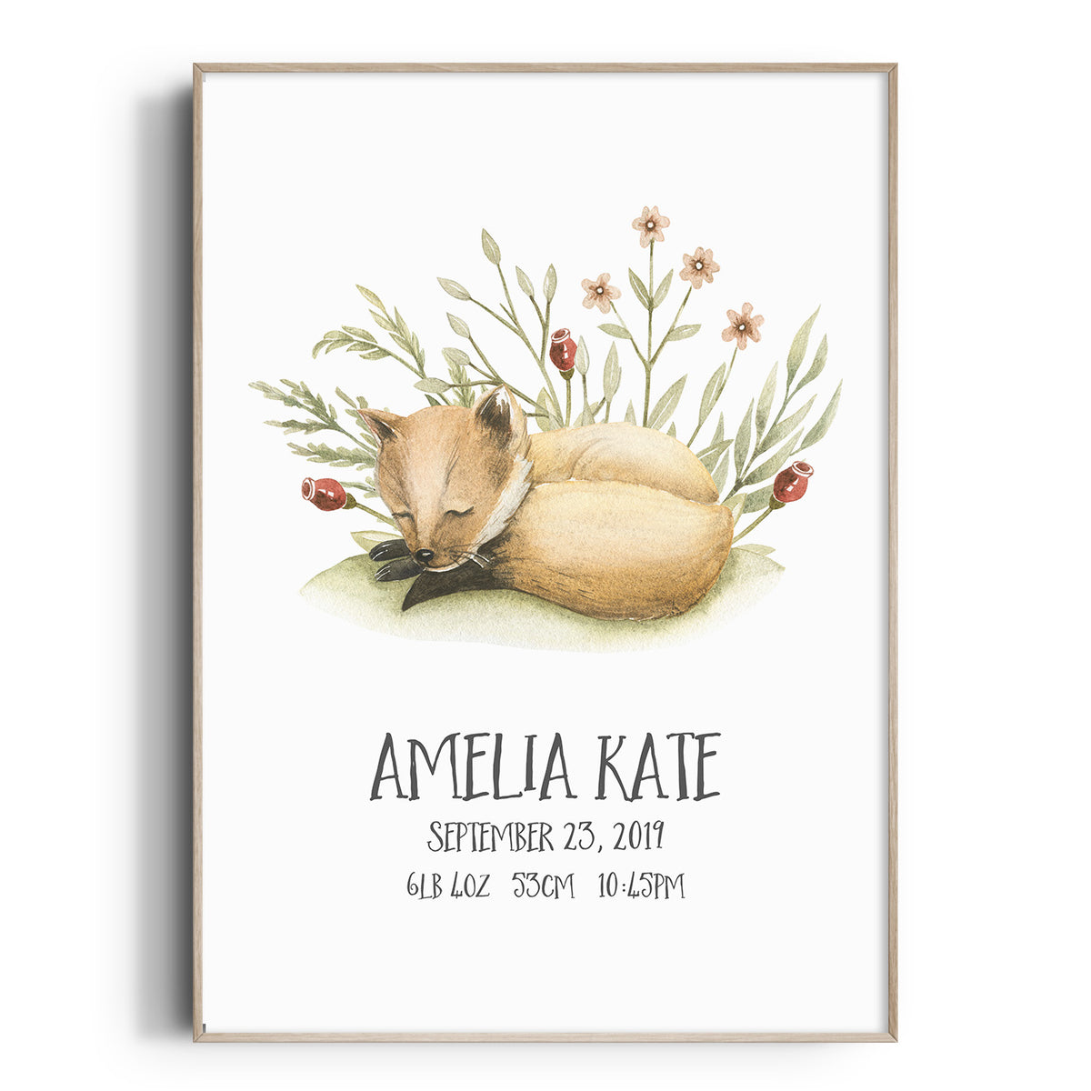 Unit price perA Woodland Fox wall art birth details print is perfect for your little girls woodland inspired nursery or bedroom decor.