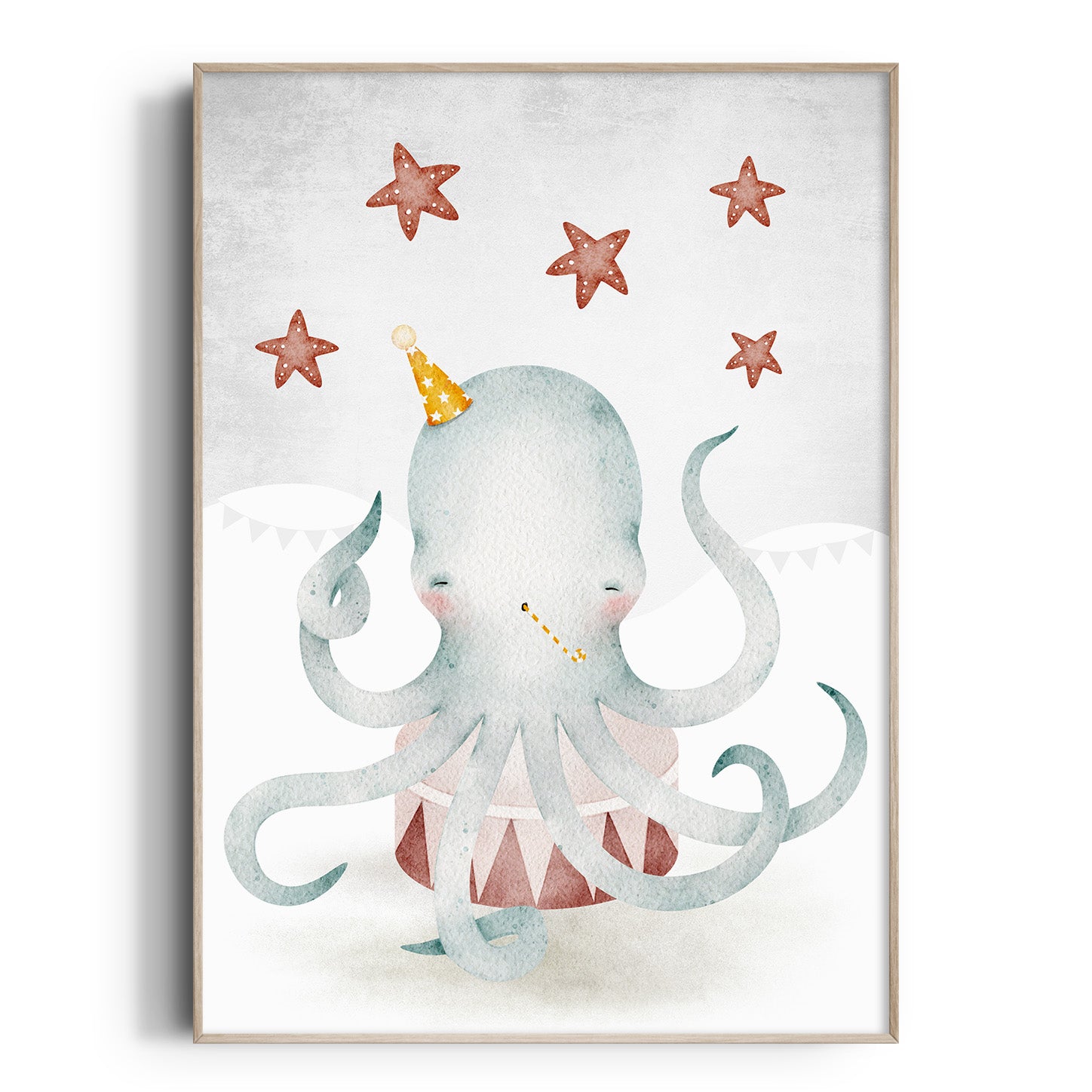 Unit price perPerfect of the circus themed nursery bedroom or playroom, this whimsical octopus print is sure to add the finishing touches to you little one's special space. Use or standalone piece or mix and match with our other circus animal wall art designs.