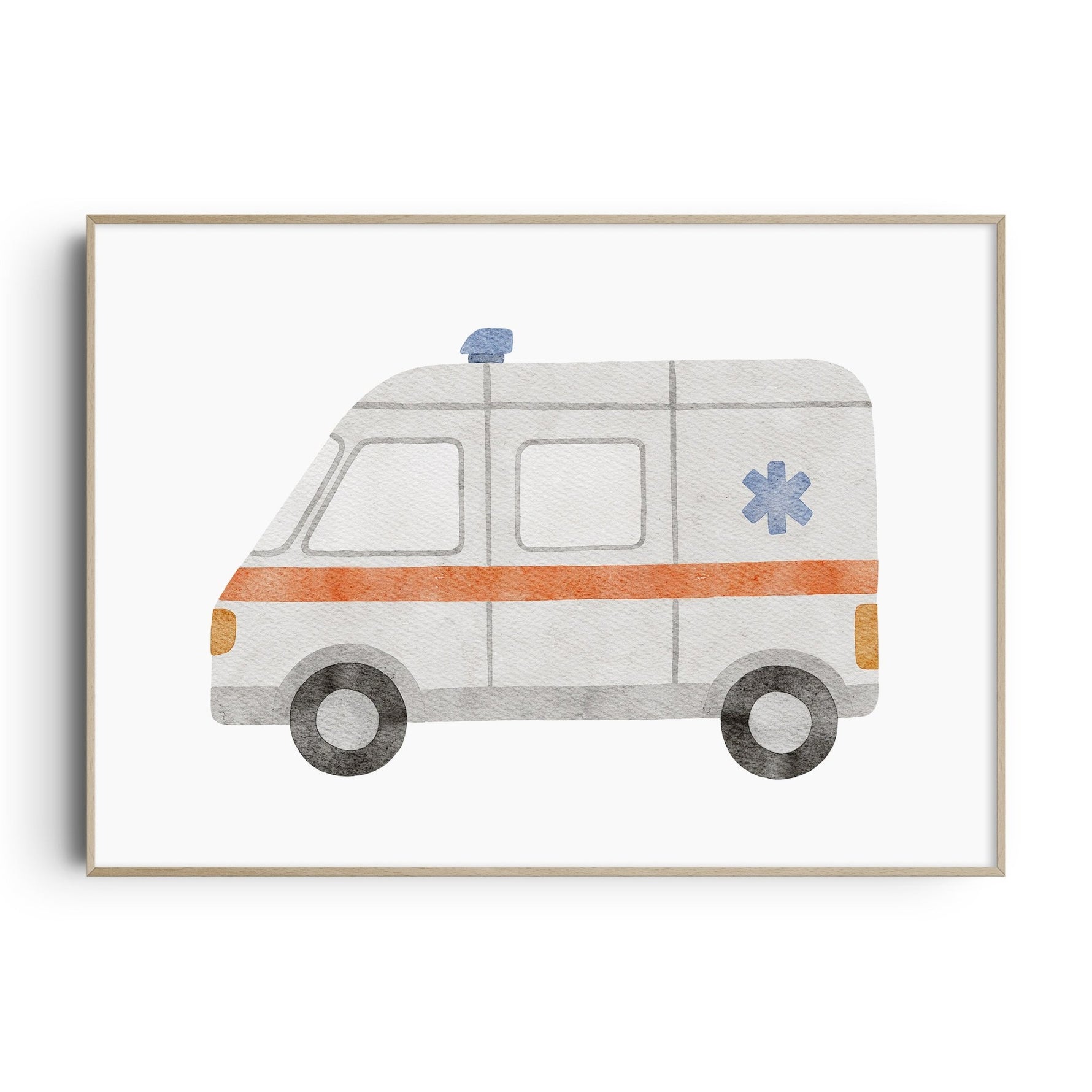 Unit price perPerfect of the transportation or emergency vehicle themed nursery, bedroom or playroom, our watercolour ambulance print can be used as a standalone piece or teamed with our other emergency vehicle prints to create a gallery wall.