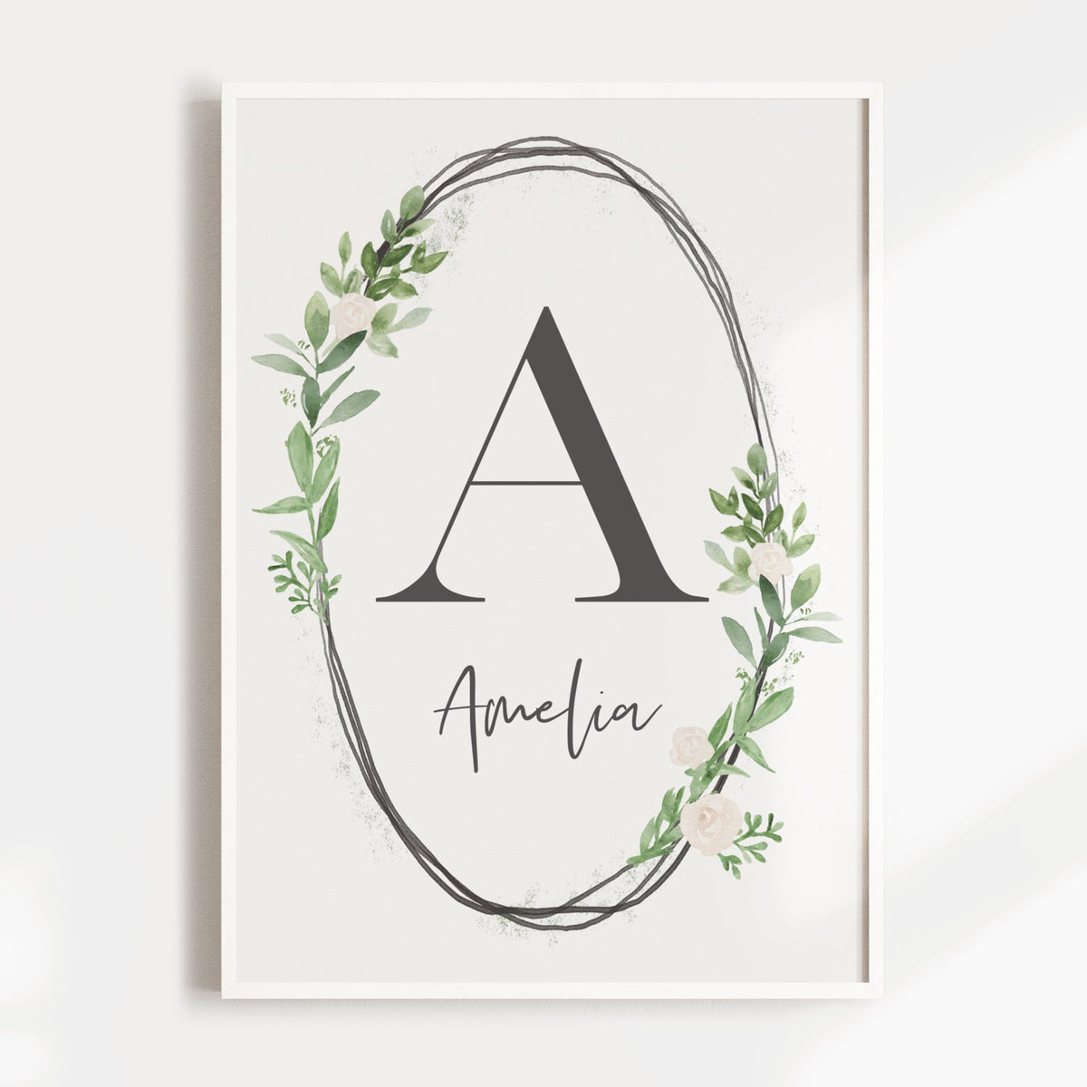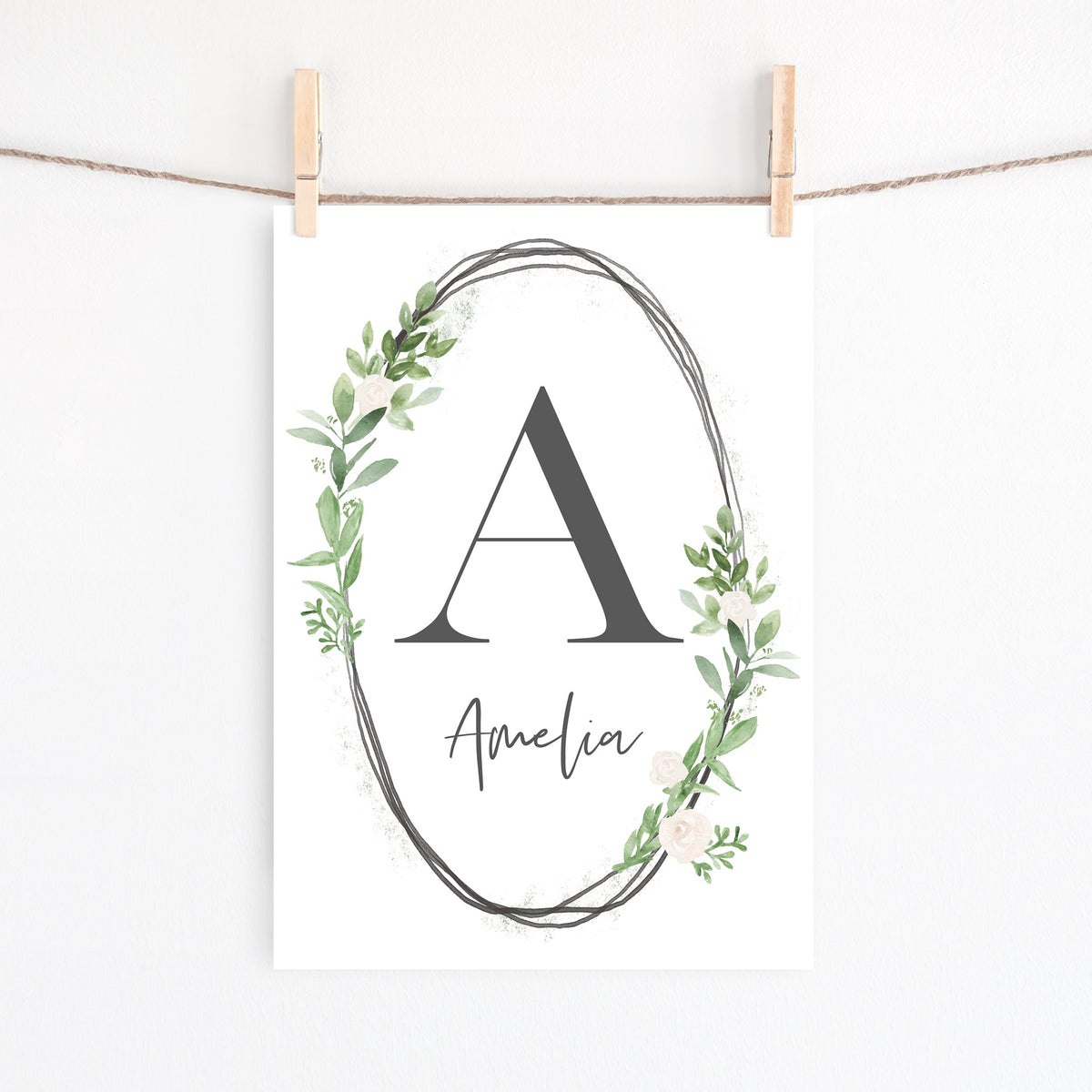 Unit price perA Boho Floral Woodland name and letter print, customised with your child's details.