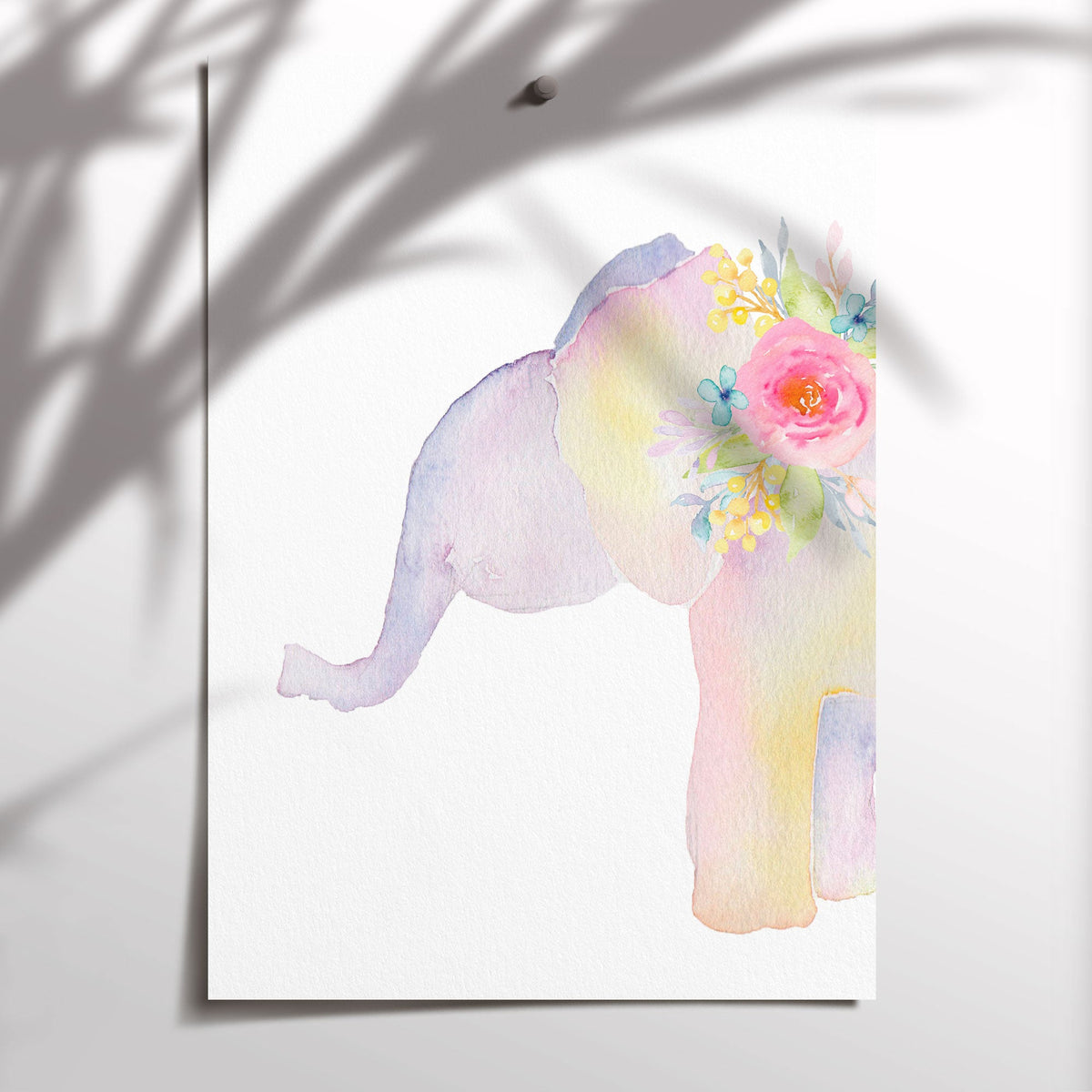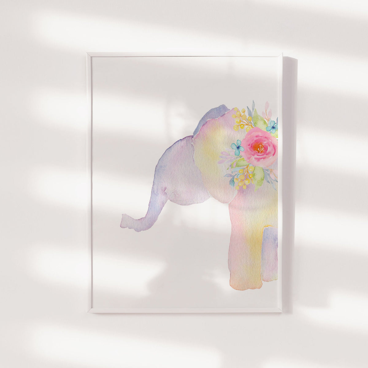 Unit price perPerfect for the boho or woodland nursery, bedroom or playroom decor is this dreamy floral watercolor elephant wall art print.
