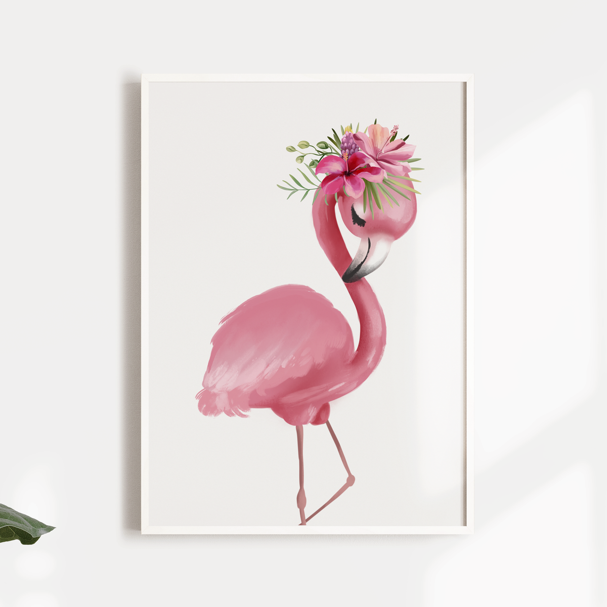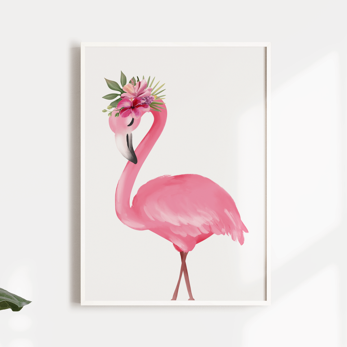 A beautiful addition to your child's nursery or bedroom is this set of 3 watercolour art prints, featuring two tropical flamingos with floral & greenery crowns and a floral embellished name print.