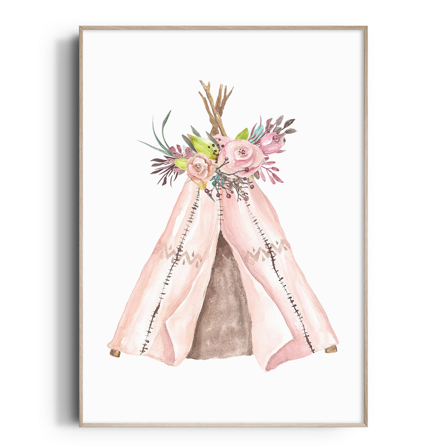 Unit price perOur Boho Floral Woodland Tribal Teepee wall art print is perfect for your little girls Boho inspired nursery or bedroom decor.