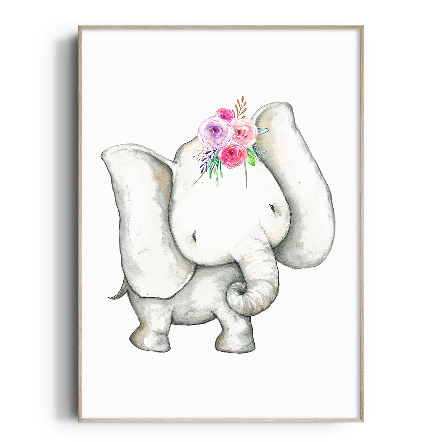 Welcome a special addition to the nursery with this gorgeous boho woodland baby elephant print! Featuring a bright, captivating blend of pink and purple florals, it will delight little ones and bring a touch of nature indoors. Create a sweet, magical space for your little one to grow and explore!
