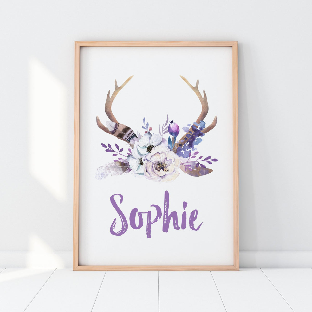 Unit price perOur Boho Floral Tribal Antler wall art name print is perfect for your little girls woodland inspired nursery or bedroom decor.