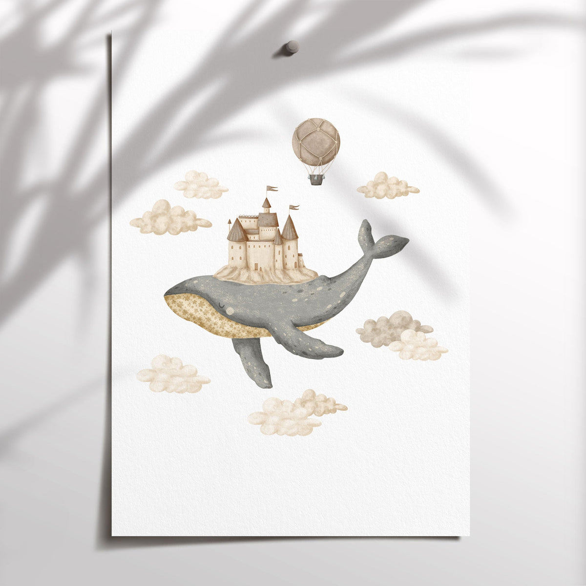 Perfect for the ocean or under the sea themed nursery, bedroom or playroom decor is this watercolour boho whale print, use as a standalone piece or co-ordinate with other designs in this range.