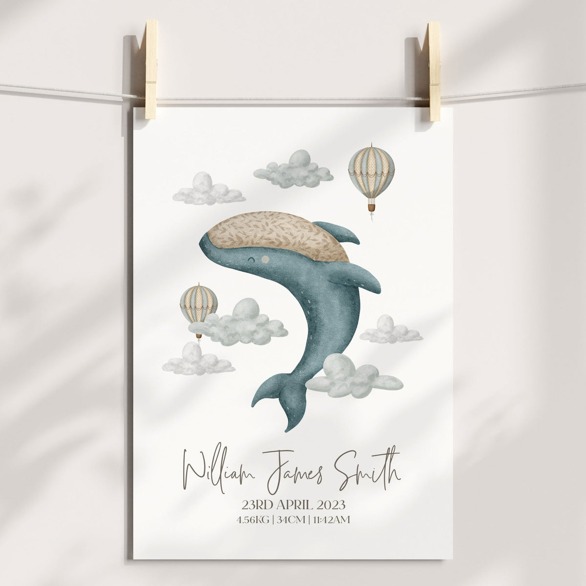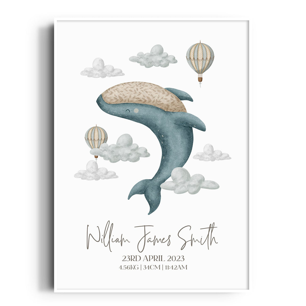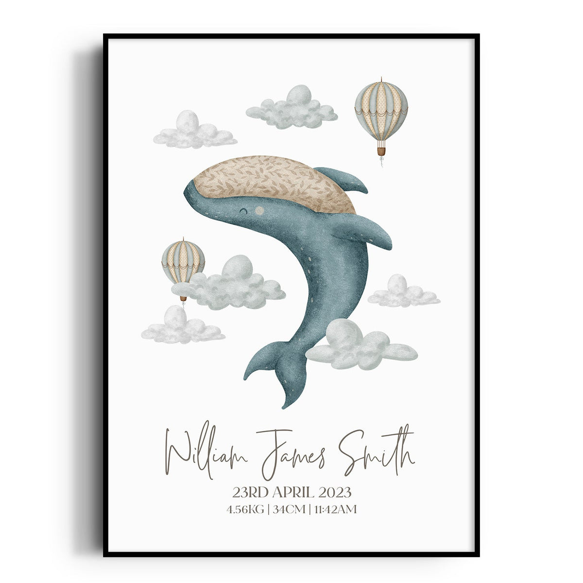 Boho Whale & Hot Air Balloon Birth Print