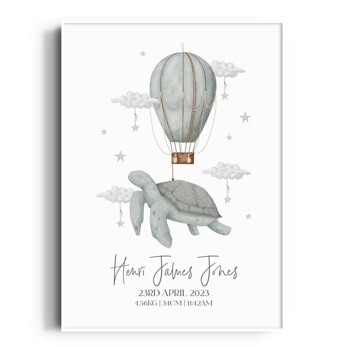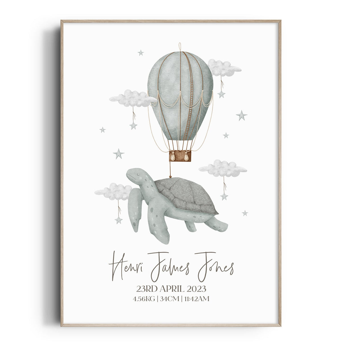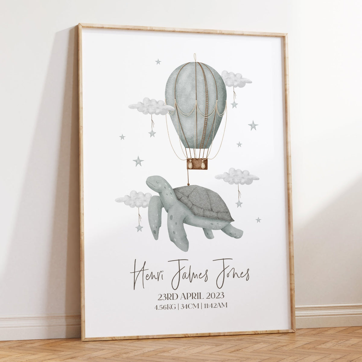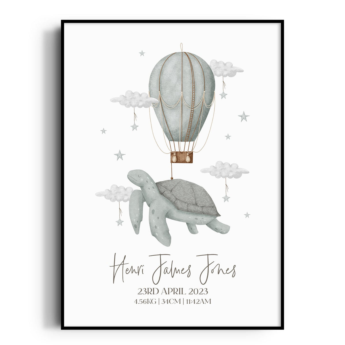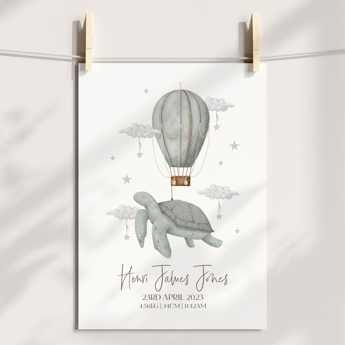 Boho Sea Turtle & Hot Air Balloon Birth Print